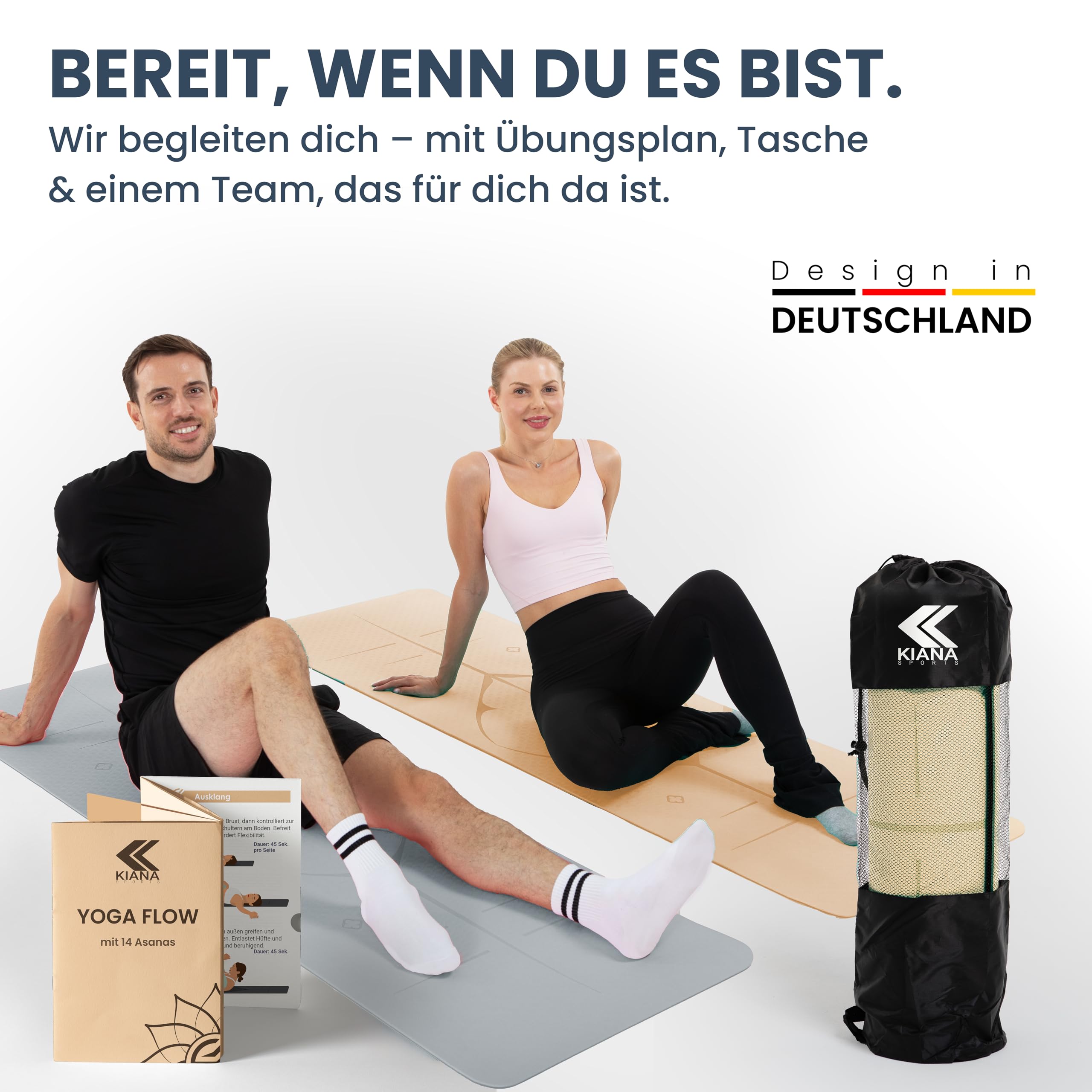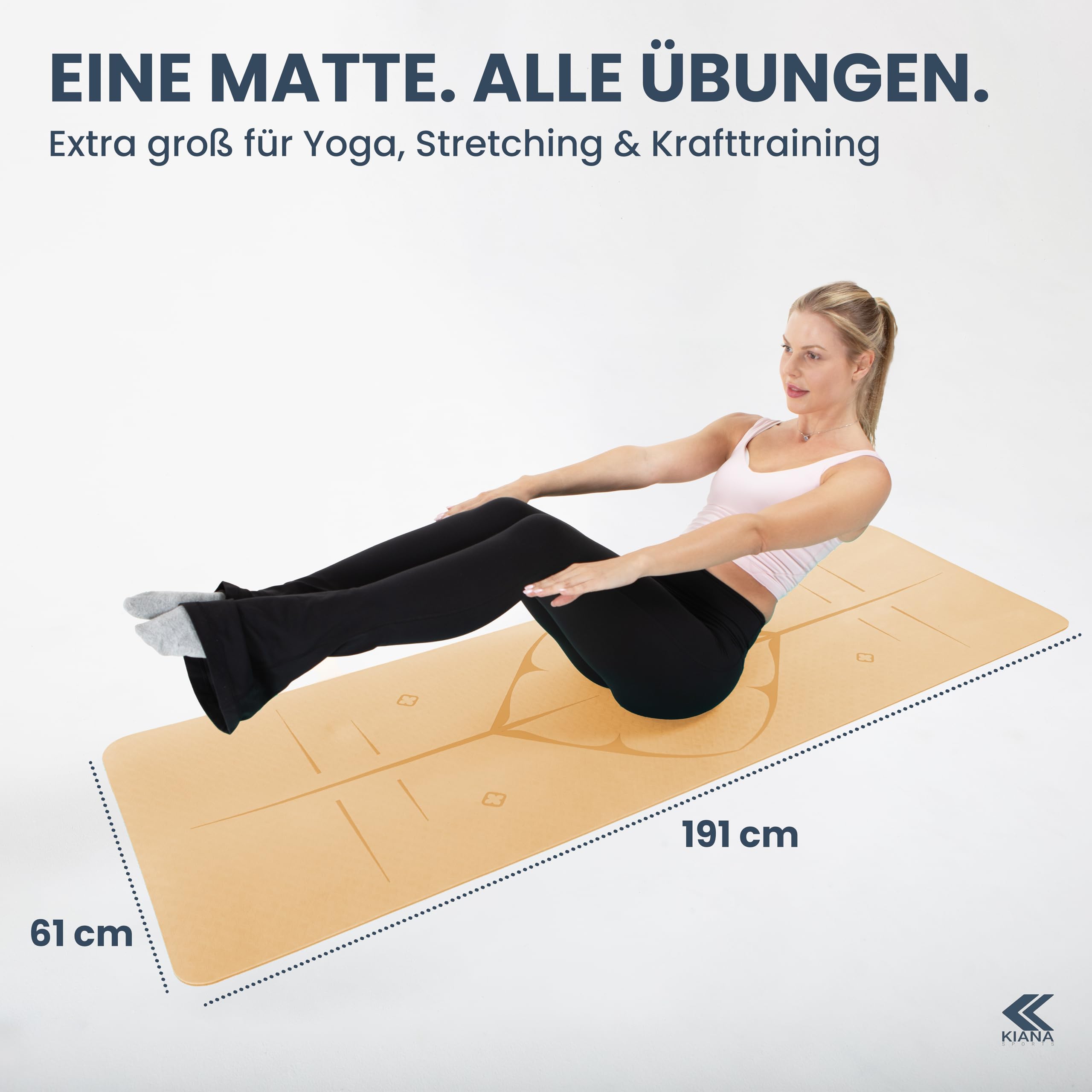 KIANA SPORTS® Yoga Matte – Rutschfeste Sportmatte in Deutschland entwickelt – 2 Komfort-Dicken – Formstabile Yogamatte & Gymnastikmatte – Ideale Fitnessmatte für Yoga & Pilates zuhause oder im Studio