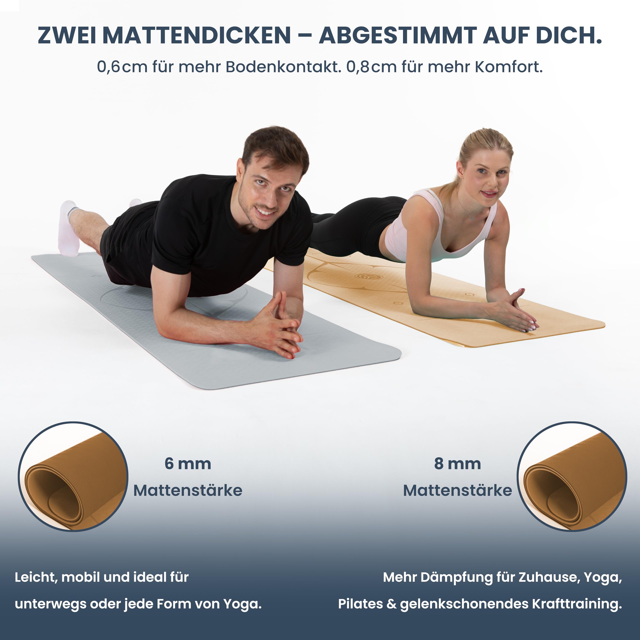 • ✅ ZWEI STÄRKEN, DIE ZU DIR PASSEN: Wähle deine Sport Matte so, wie sie zu dir passt: 0,6 cm für mehr Bodennähe und Mobilität oder 0,8 cm für extra Komfort und Dämpfung. Beide Varianten bieten dir genau die Pilates Matte, die du für dein individuelles Training brauchst.
