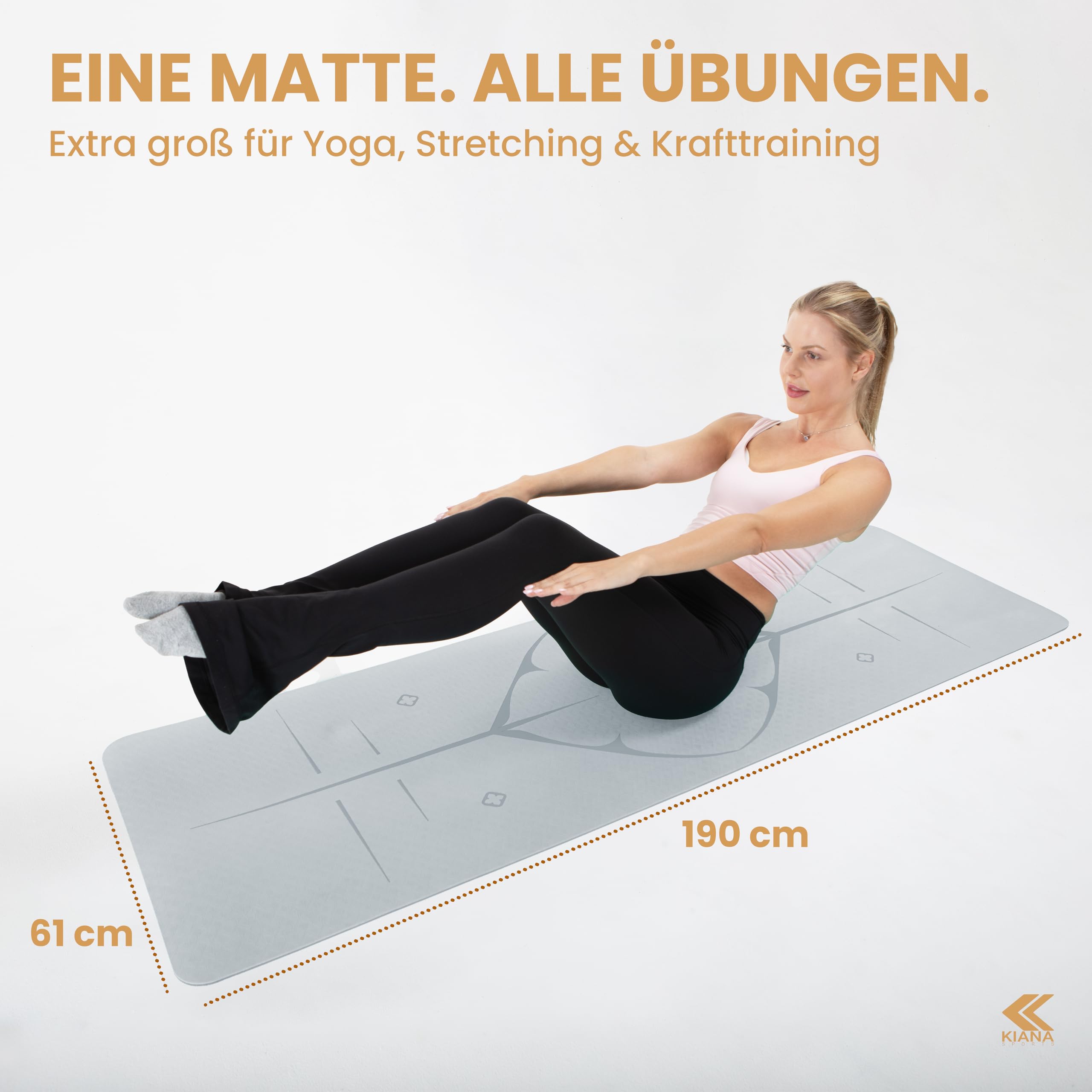 KIANA SPORTS® Yoga Matte – Rutschfeste Sportmatte in Deutschland entwickelt – 2 Komfort-Dicken – Formstabile Yogamatte & Gymnastikmatte – Ideale Fitnessmatte für Yoga & Pilates zuhause oder im Studio