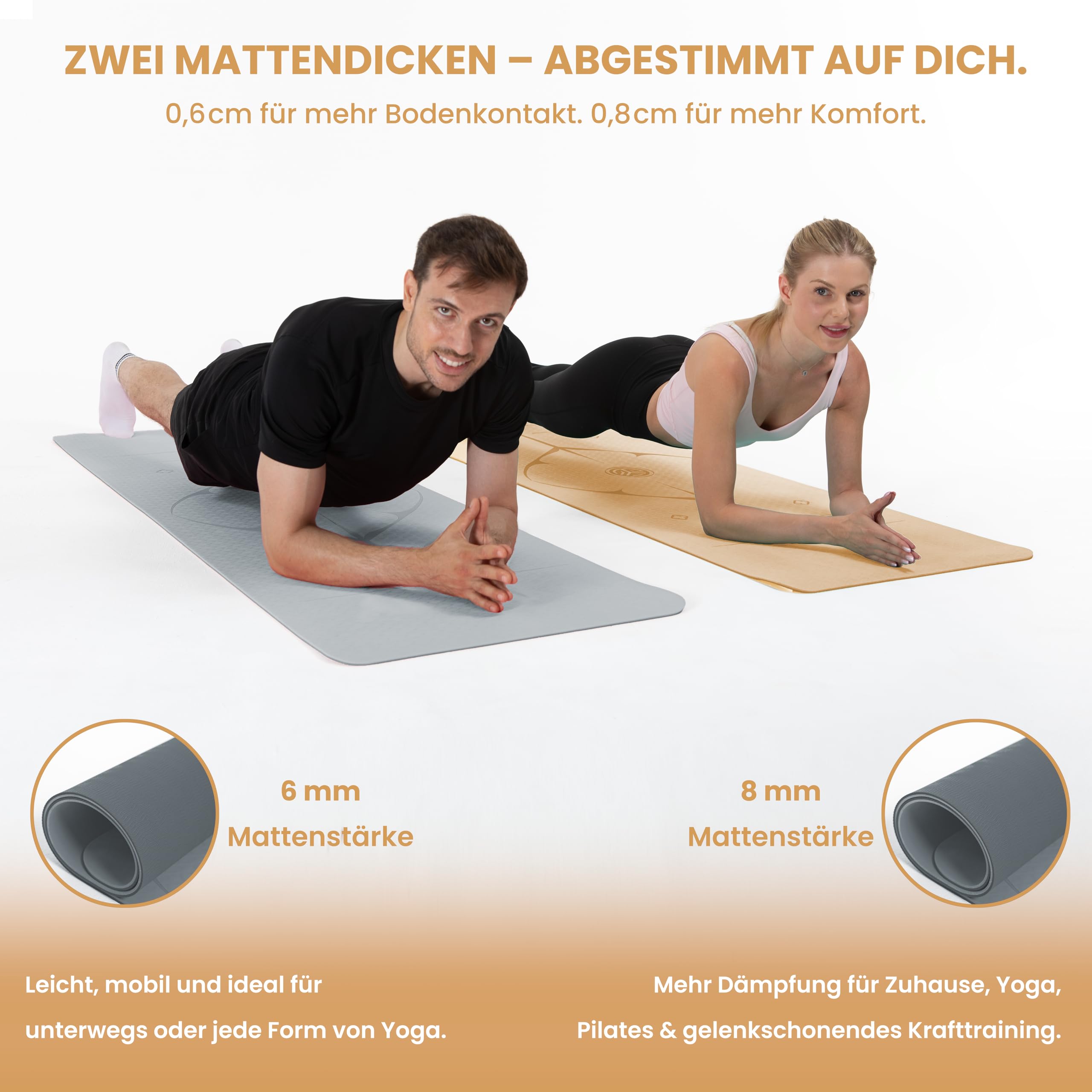 • ✅ ZWEI STÄRKEN, DIE ZU DIR PASSEN: Wähle deine Sport Matte so, wie sie zu dir passt: 0,6 cm für mehr Bodennähe und Mobilität oder 0,8 cm für extra Komfort und Dämpfung. Beide Varianten bieten dir genau die Pilates Matte, die du für dein individuelles Training brauchst.