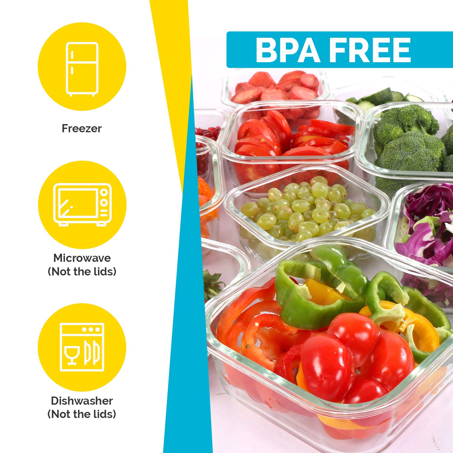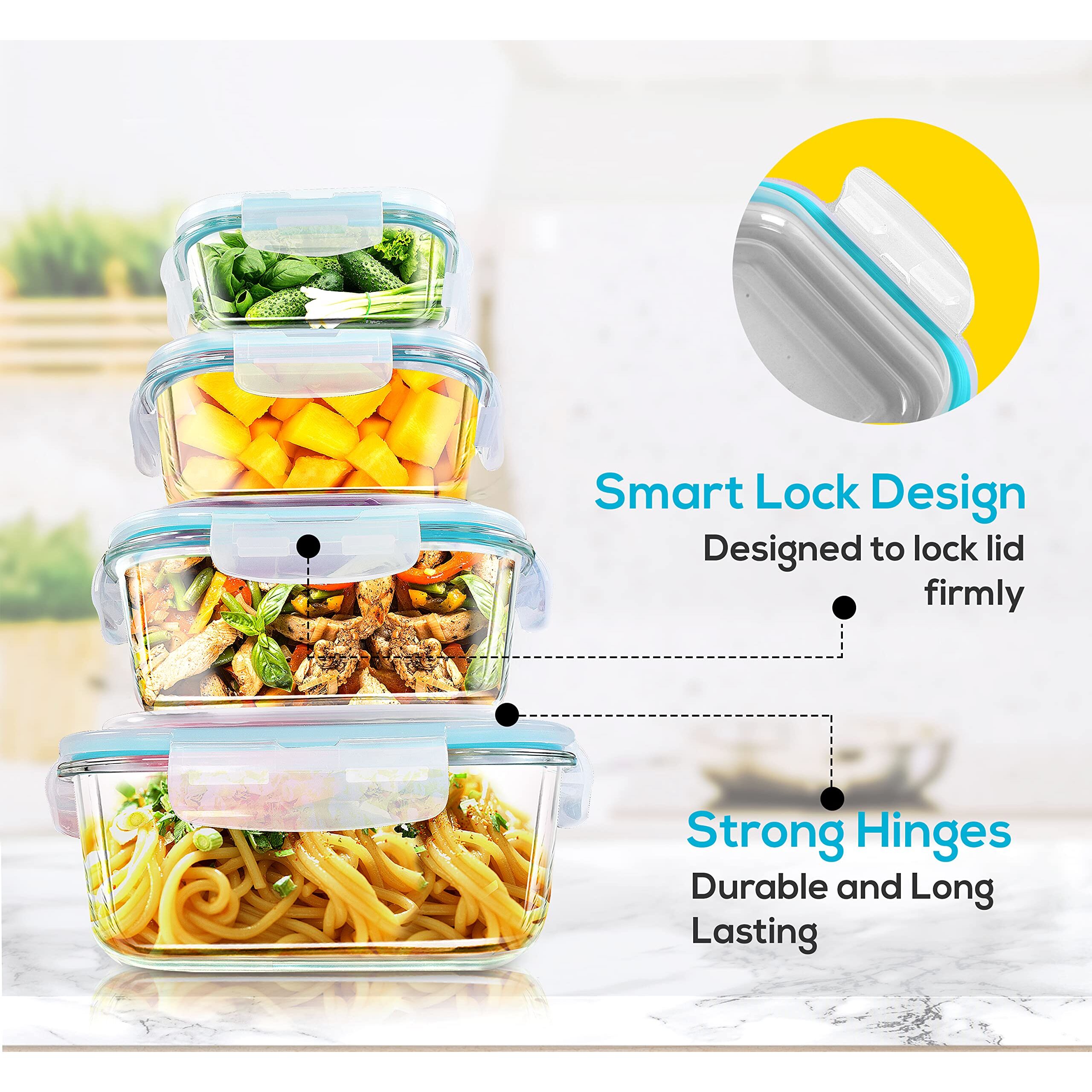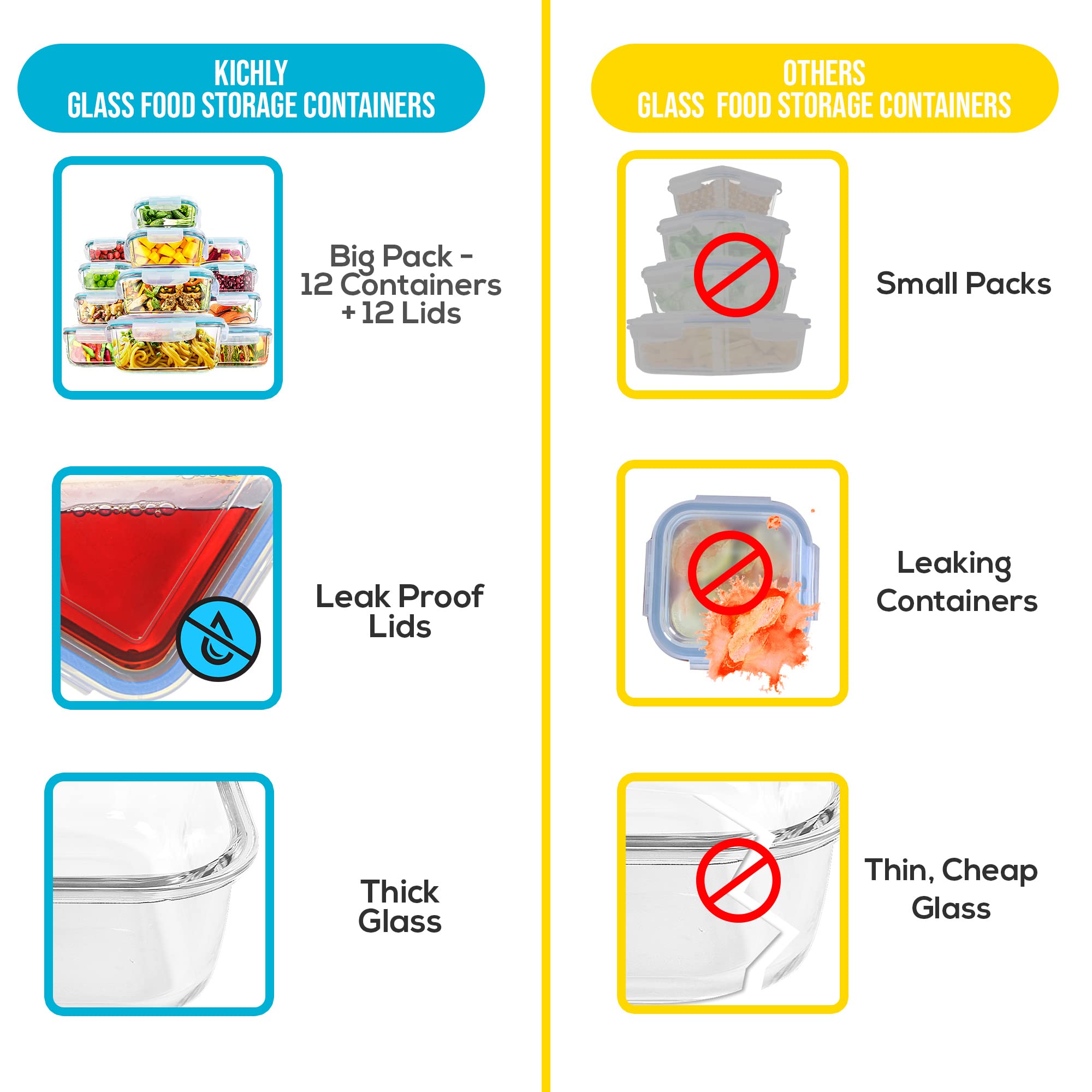 KICHLY Glasbehälter Mit Deckel - meal prep boxen glas - Transparente Erstklassig geeignet für mikrowelle - Luftdicht, Auslaufsicher, BPA-frei - 24er (12 Behälter und 12 Deckel)