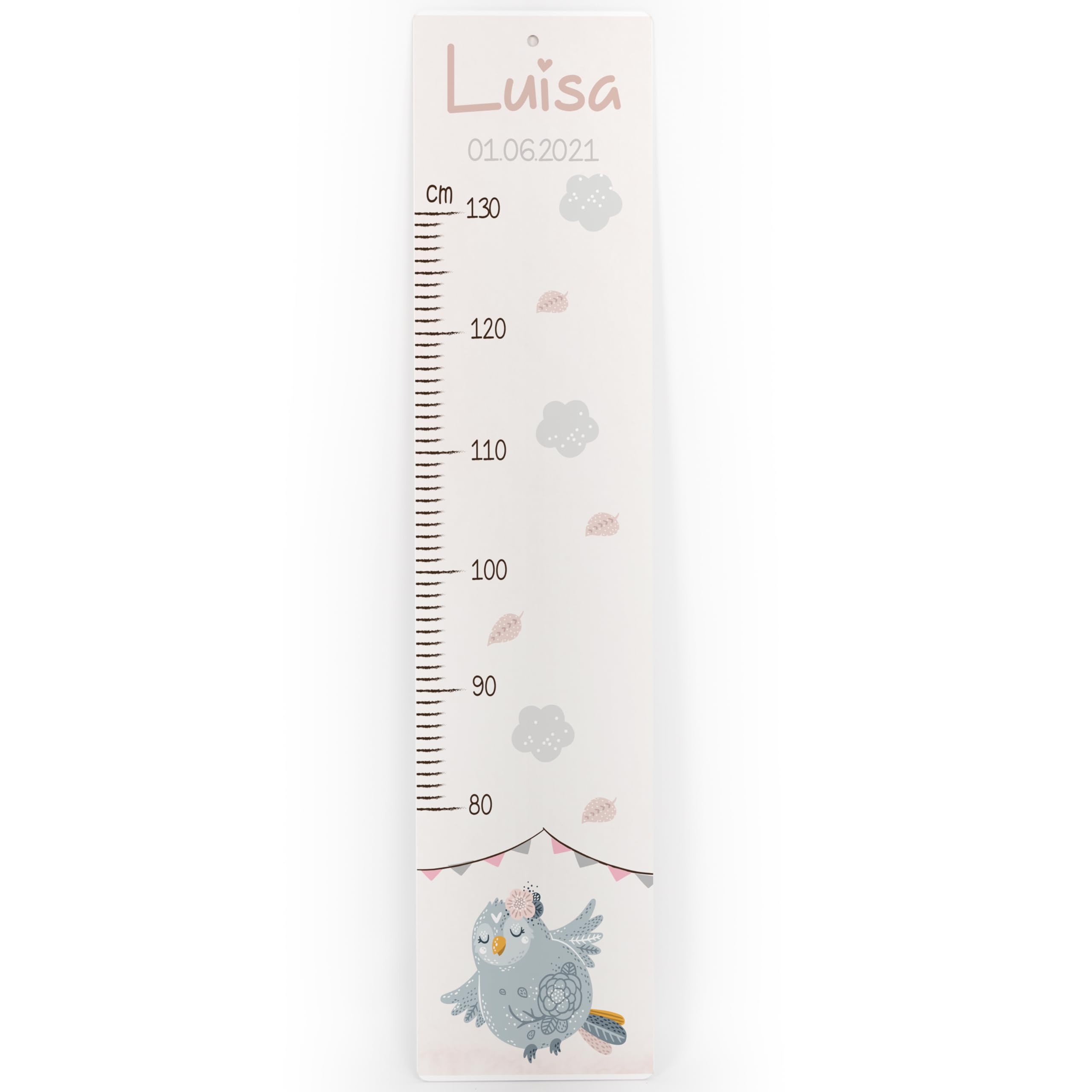 Kidsmood - Personalisierte Messlatte Kinder aus Aluverbund – Hochwertige Messleiste & Wand-Deko für Kinderzimmer mit niedlicher Eule – Tolles Taufgeschenk für Mädchen & Jungen - Skala 65-140cm