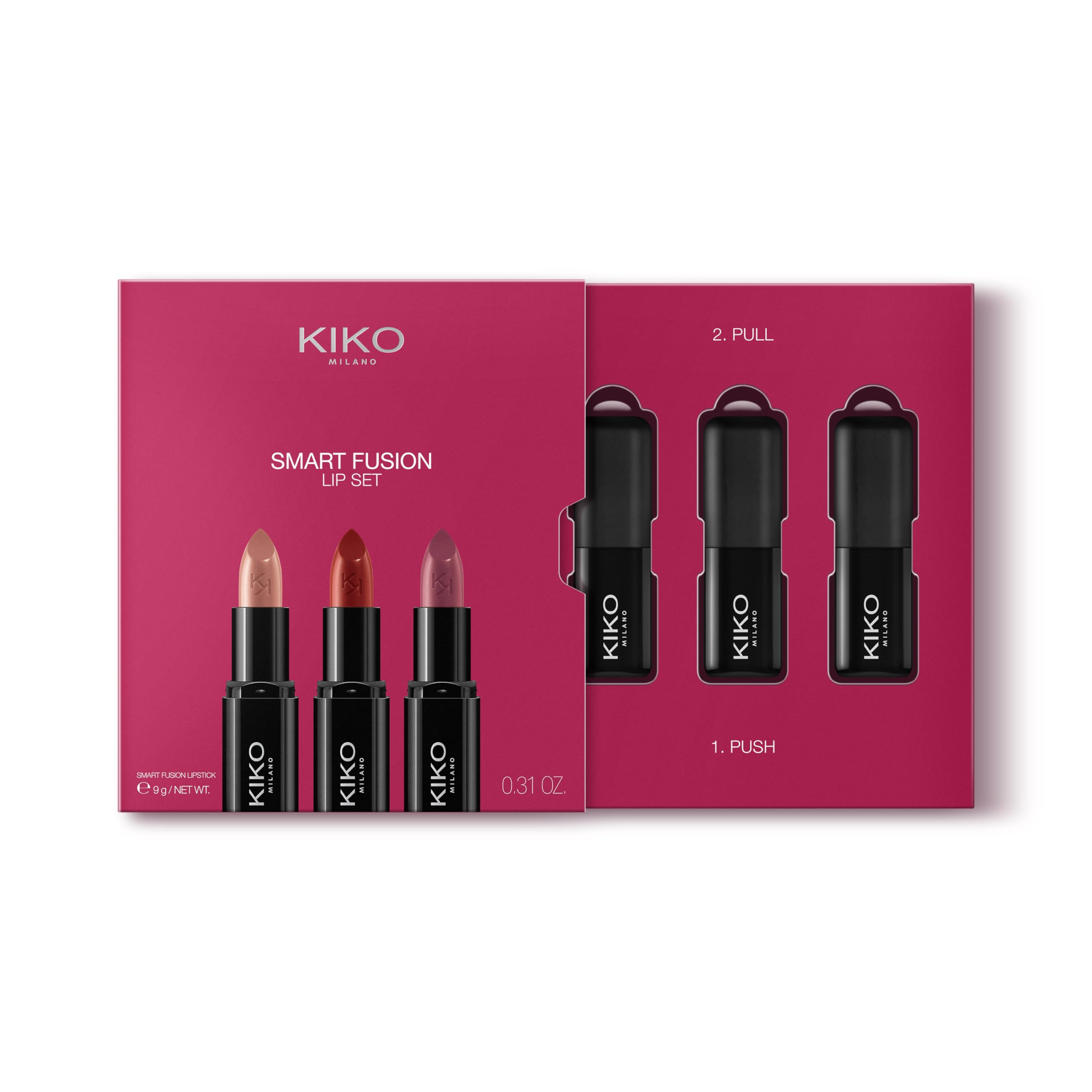 KIKO Milano Smart Fusion Lip Set 02, Lippen-Set Mit 3 Lippenstiften Mit Glänzendem Finish