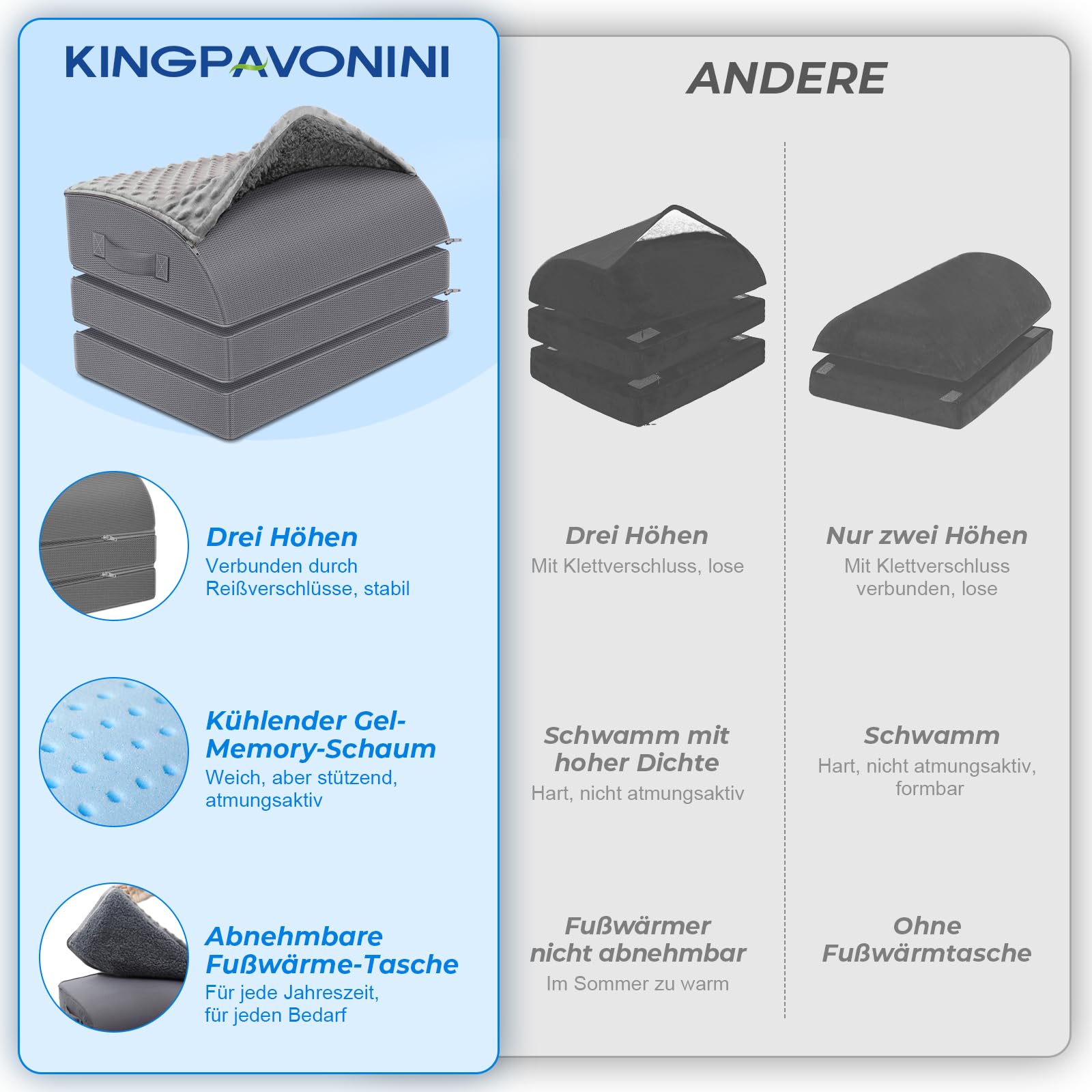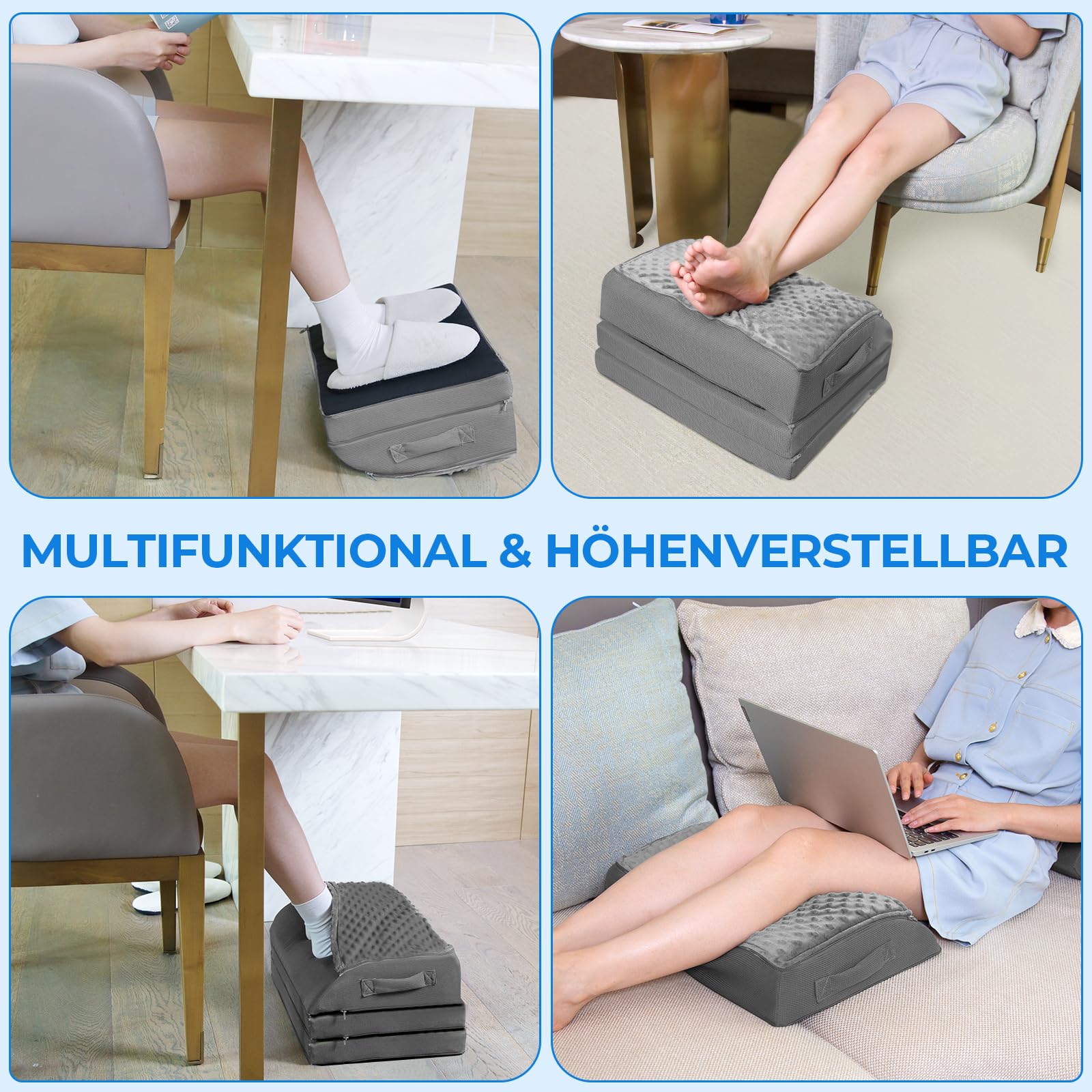 KingPavonini Fussstütze Schreibtisch, Gel-Memory-Schaum Fussbank, 3 Höhen verstellbar, wärmende Fusstasche für Rücken, Hüfte, Beine Discomfort Relief, ergonomische Footrest für Bürostuhl & Gaming-Stuhl