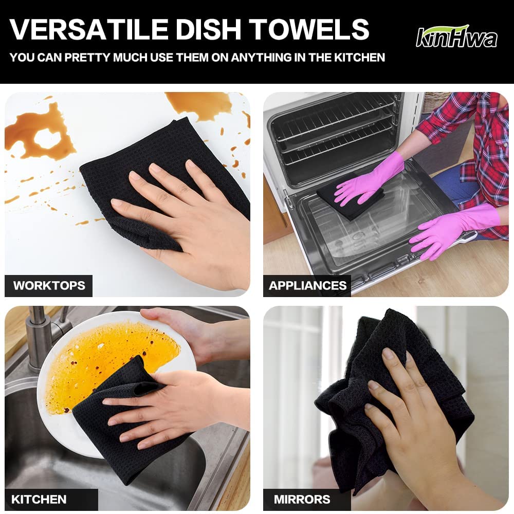 KinHwa Spüllappen schwarz Spültuch Waffeltuch Mikrofasertuch waschbar Spültücher für Küche Dicke Putzlappen Fusselfrei 30cmx30cm 6 Stück