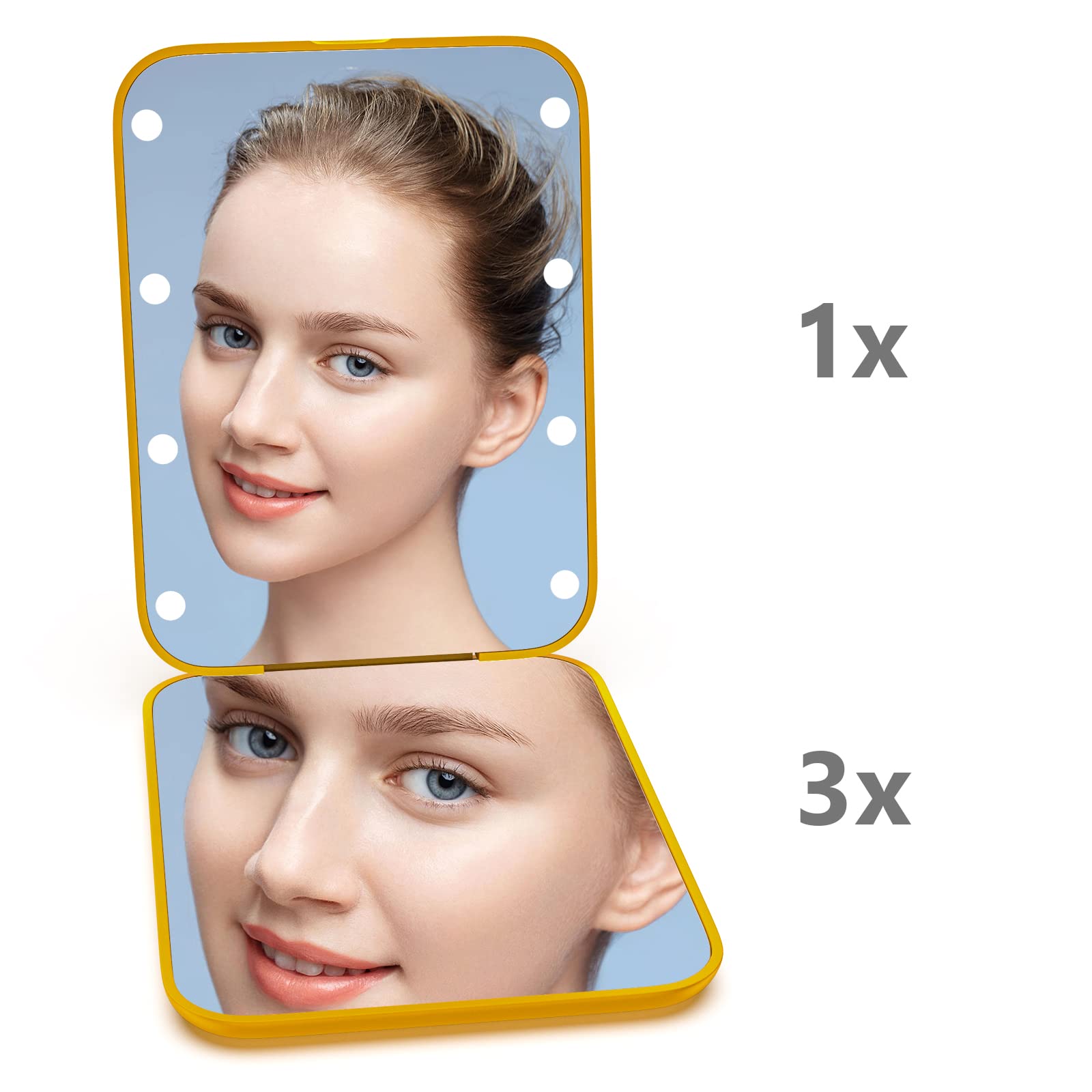 Kintion LED-Taschenspiegel – Faltbar, 1x/3x Vergrösserung (Gelb)