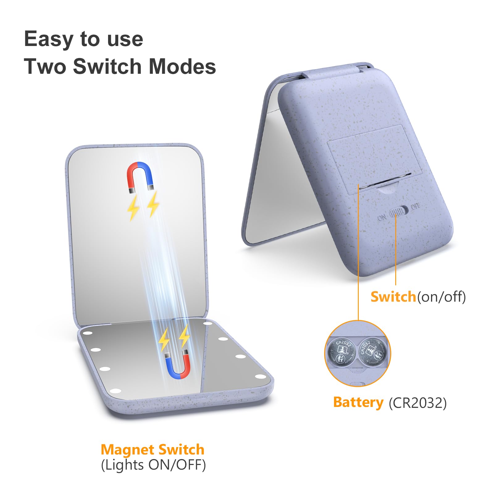 Das klappbare Design schützt die Spiegeloberflächen, spart Platz und passt mühelos in Hand- oder Kosmetiktaschen. Perfekt für Reisen und den täglichen Gebrauch.
