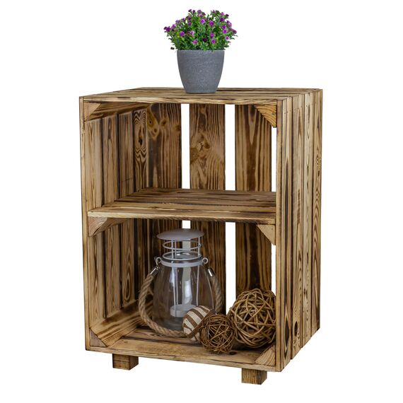 Kistenkolli Altes Land Nachttisch Abstetlltisch weiss/Natur/geflammt Masse ca 30x40x55cm Regalkiste Flaschenablage Weinregal Apfelkiste/Weinkiste (Geflammt)