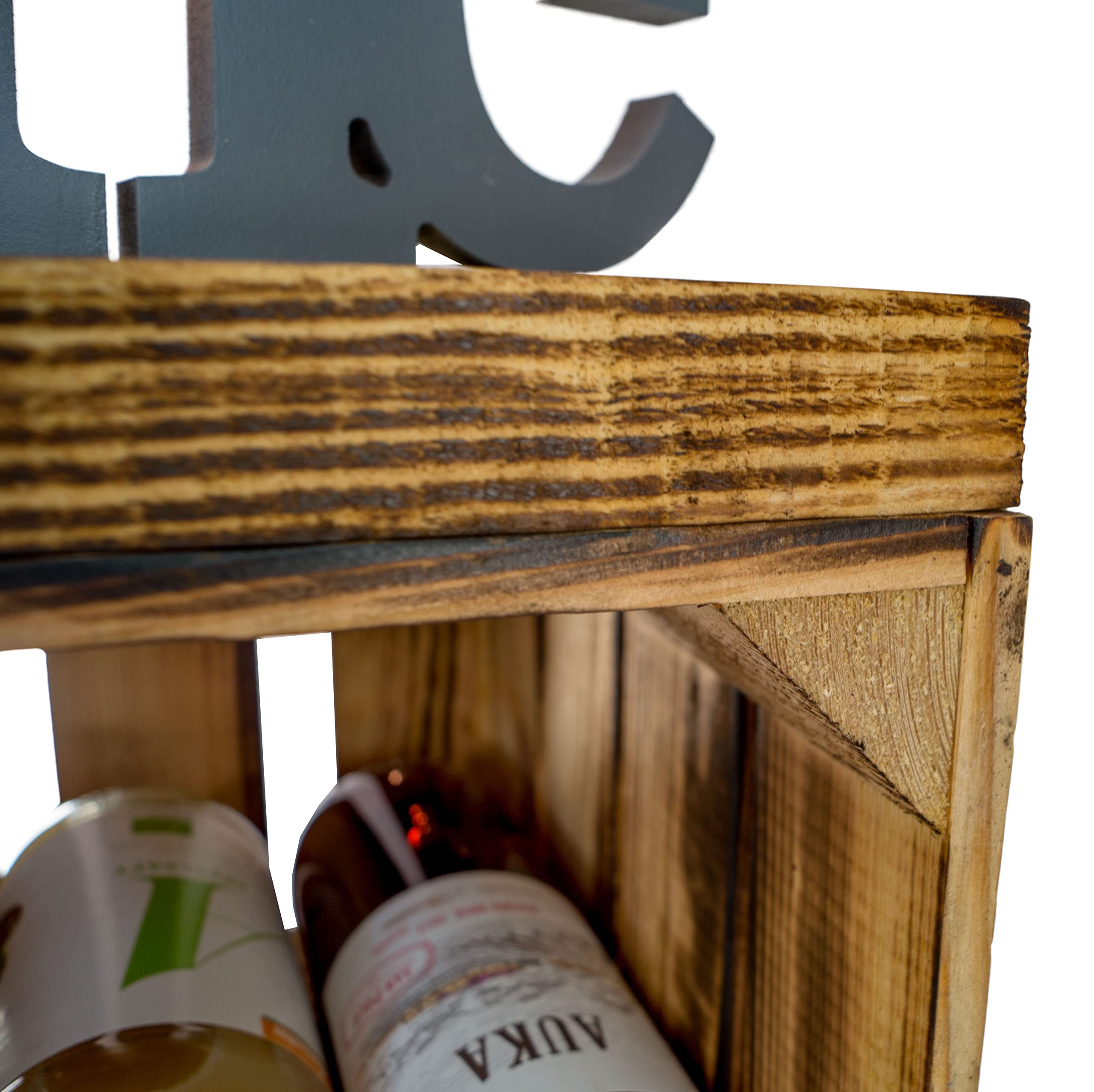 gehobeltes Weinregal weiss / natur / geflammt