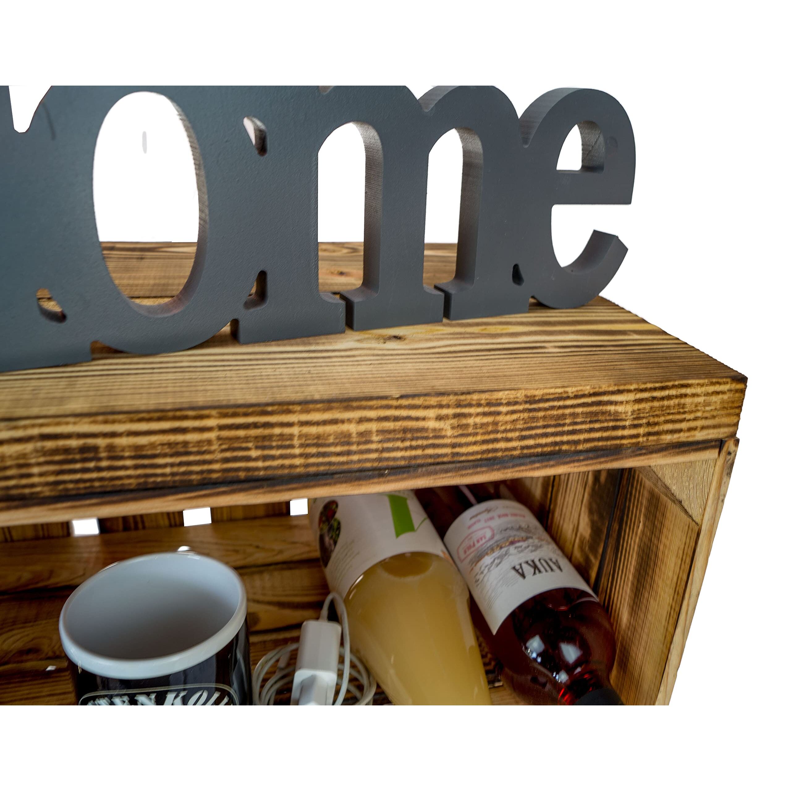 Kistenkolli Altes Land Nachttisch Abstelltisch weiss/Natur/geflammt Masse ca 30x40x55cm Regalkiste Flaschenablage Weinregal Apfelkiste/Weinkiste (geflammt mit geflammter Planke)