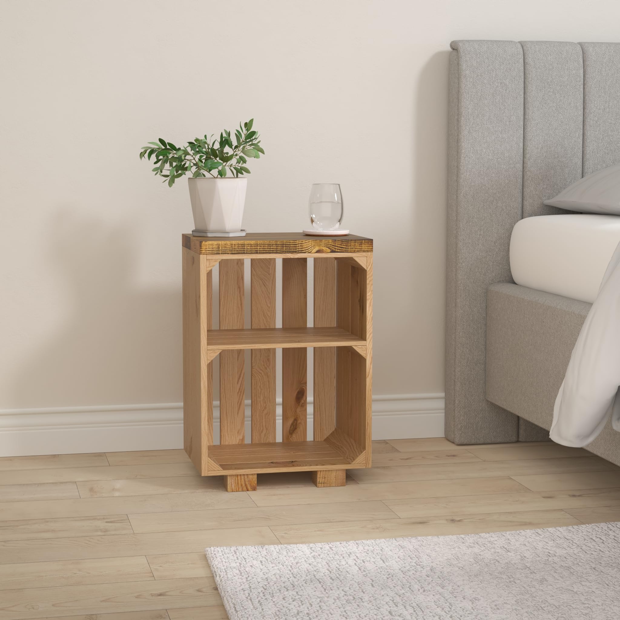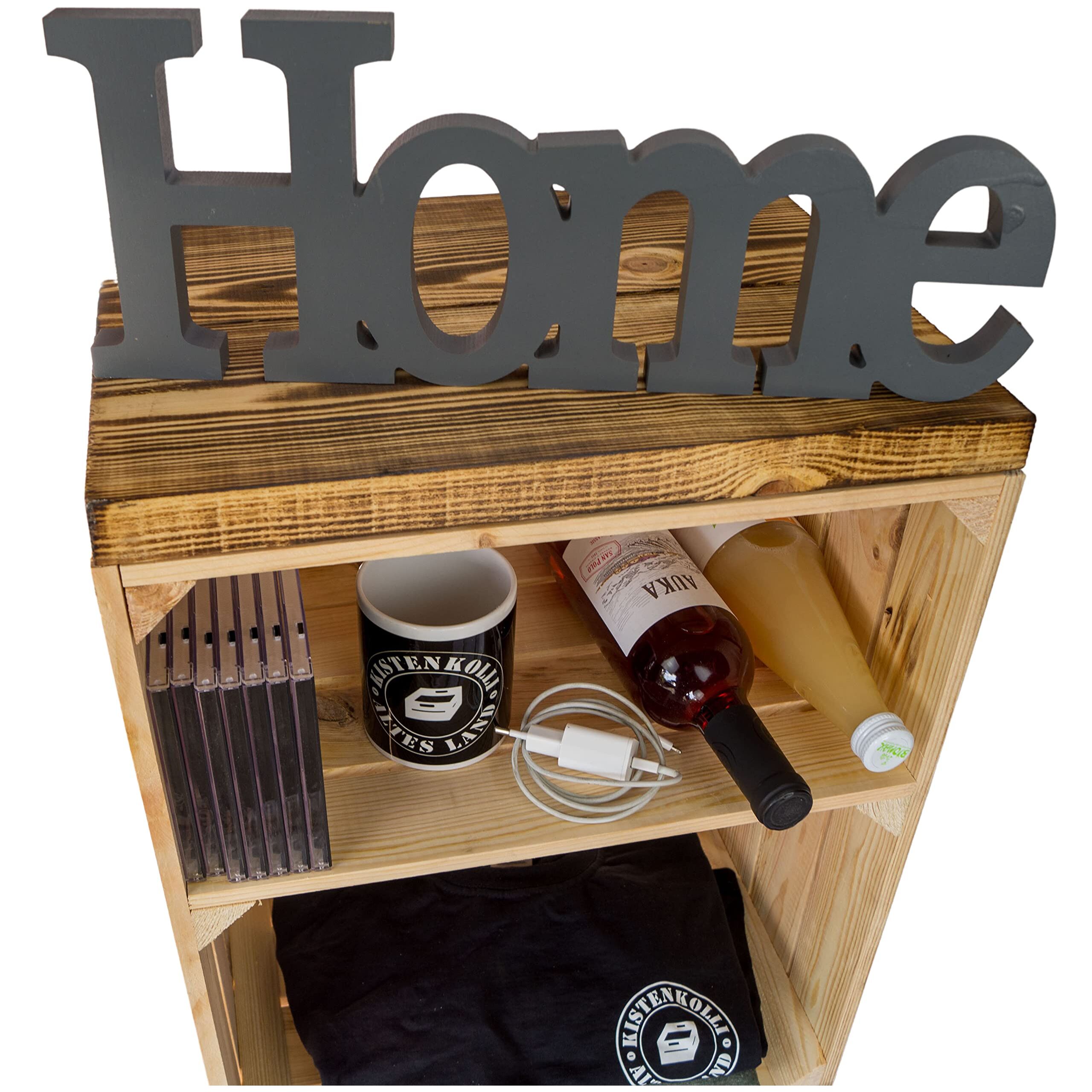 Kistenkolli Altes Land Nachttisch Abstelltisch weiss/Natur/geflammt Masse ca 30x40x55cm Regalkiste Flaschenablage Weinregal Apfelkiste/Weinkiste (Natur mit geflammter Planke)