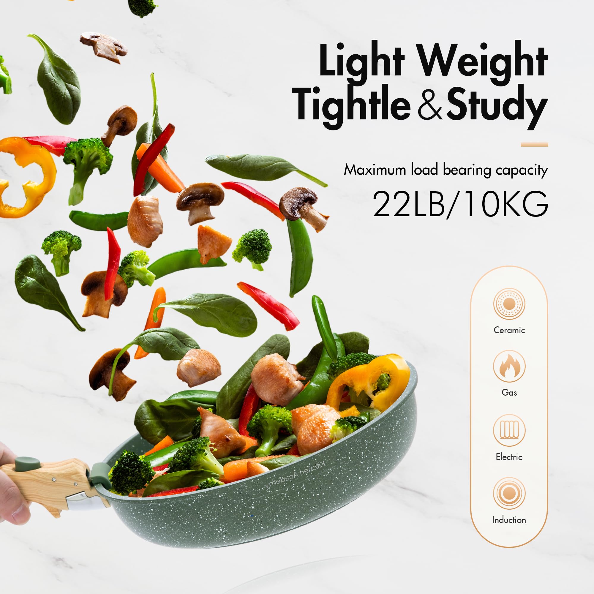 Das Set ist sehr vielseitig und kann auf allen Herdarten verwendet werden, einschliesslich Induktionsherden, Gasöfen, Halogenöfen und Keramiköfen. Der abnehmbare hitzebeständige Bakelitgriff ermöglicht eine einfache Handhabung und schützt Ihre Hand vor Schäden durch hohe Temperaturen.