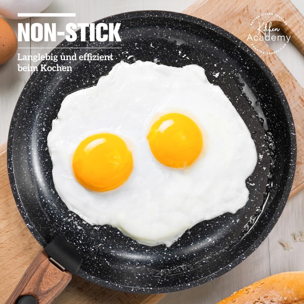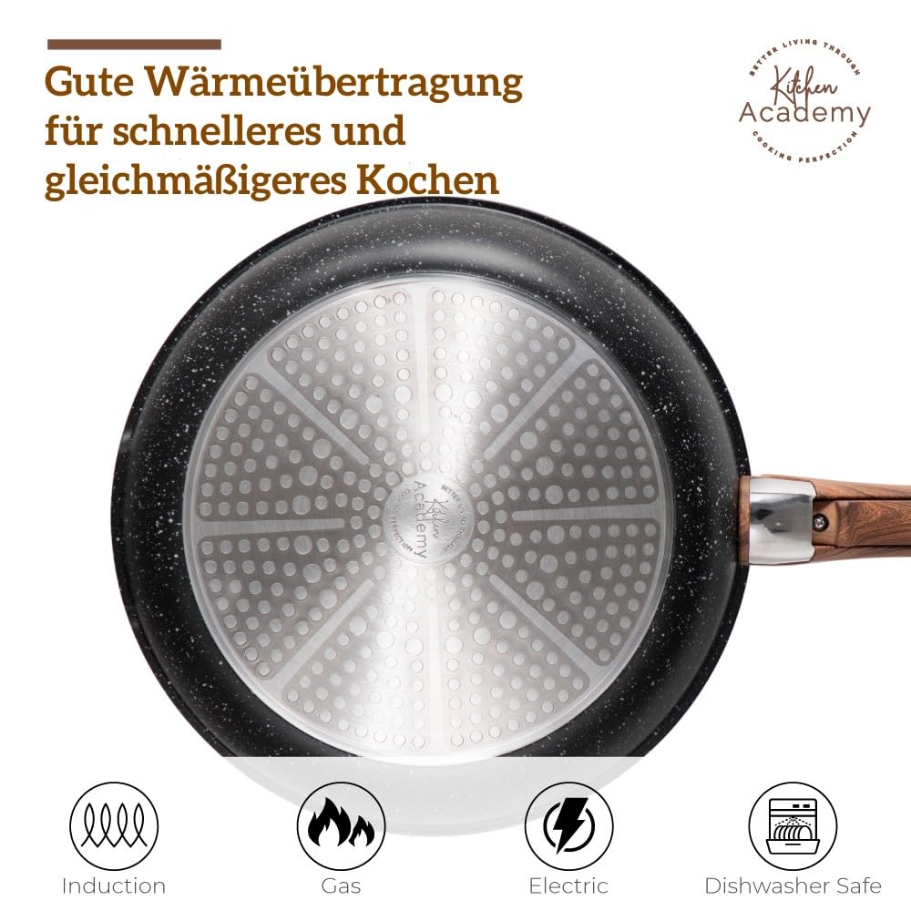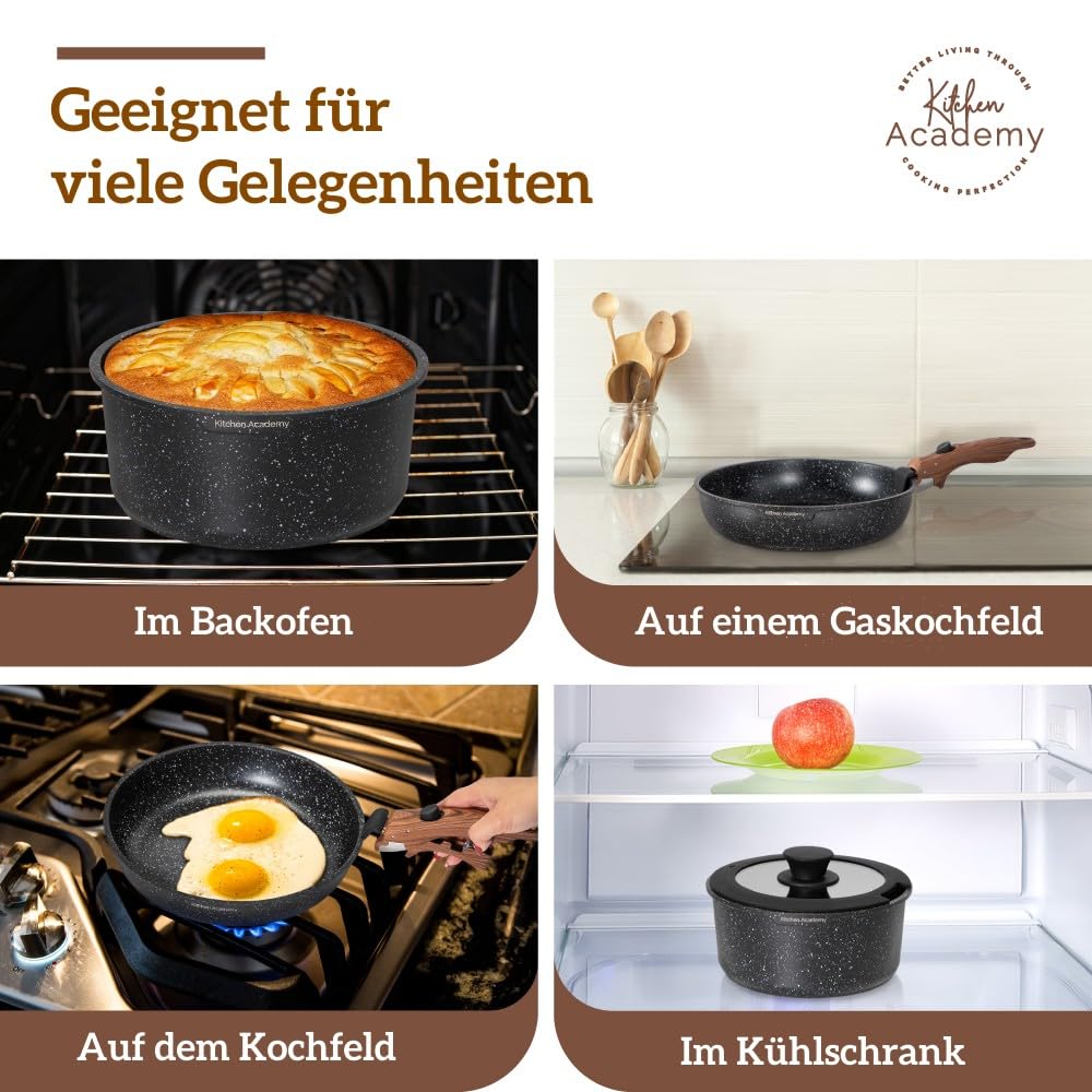 Kitchen Academy Topfset 10tlg, Topf Pfannenset mit Glasdeckeln, Marmorbeschichtung Antihaft-Versiegelung Kochgeschirr-Set, induktionsgeeignet, Maseriger glater Griff, Schwarz