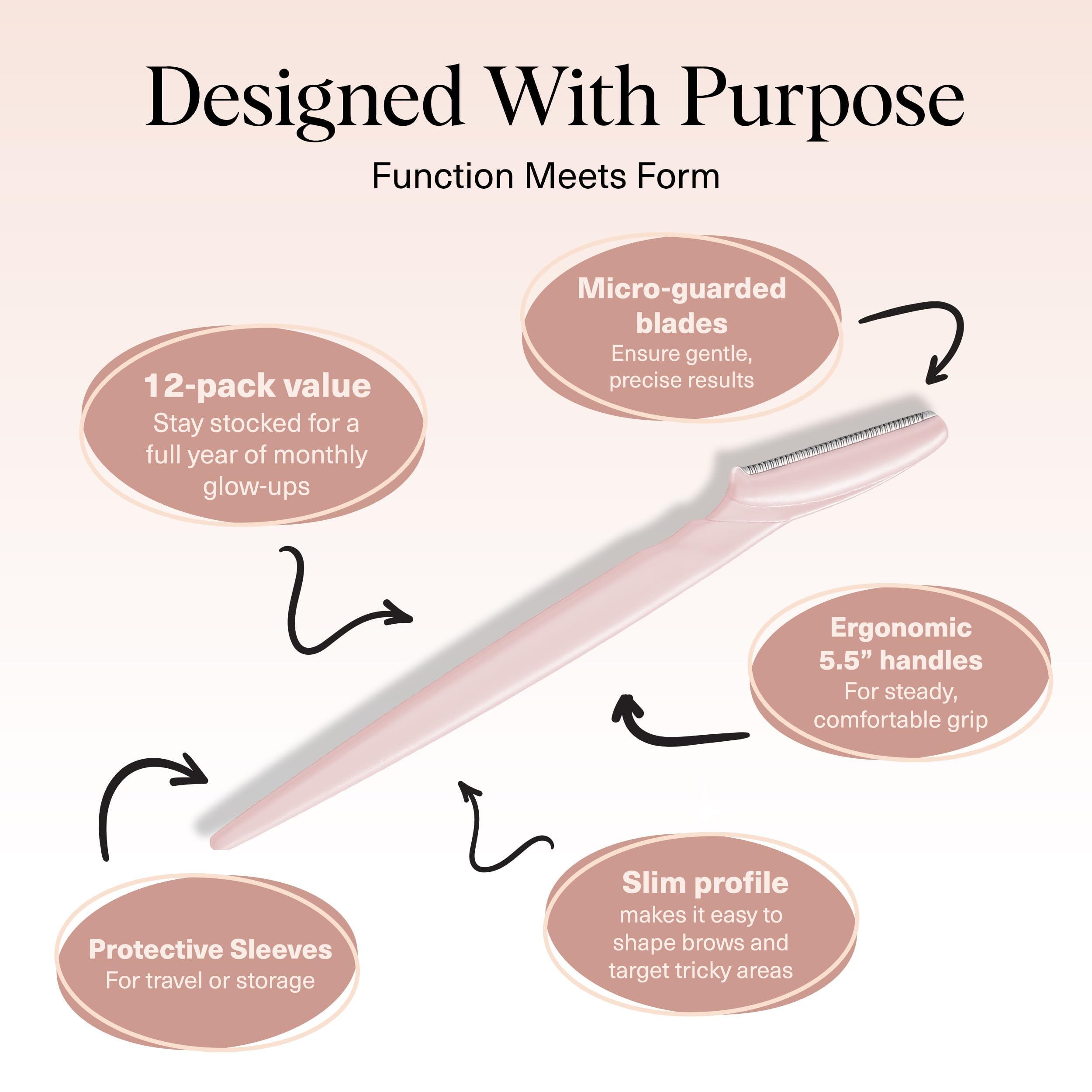 Kitsch Dermaplaning Tool – 12 Stück Rasiermesser, Gesichtsrasierer für Frauen, Augenbrauenrasierer, Gesichtshaarentfernung für Frauen, Dermaplane-Rasierer für das Gesicht, Blush