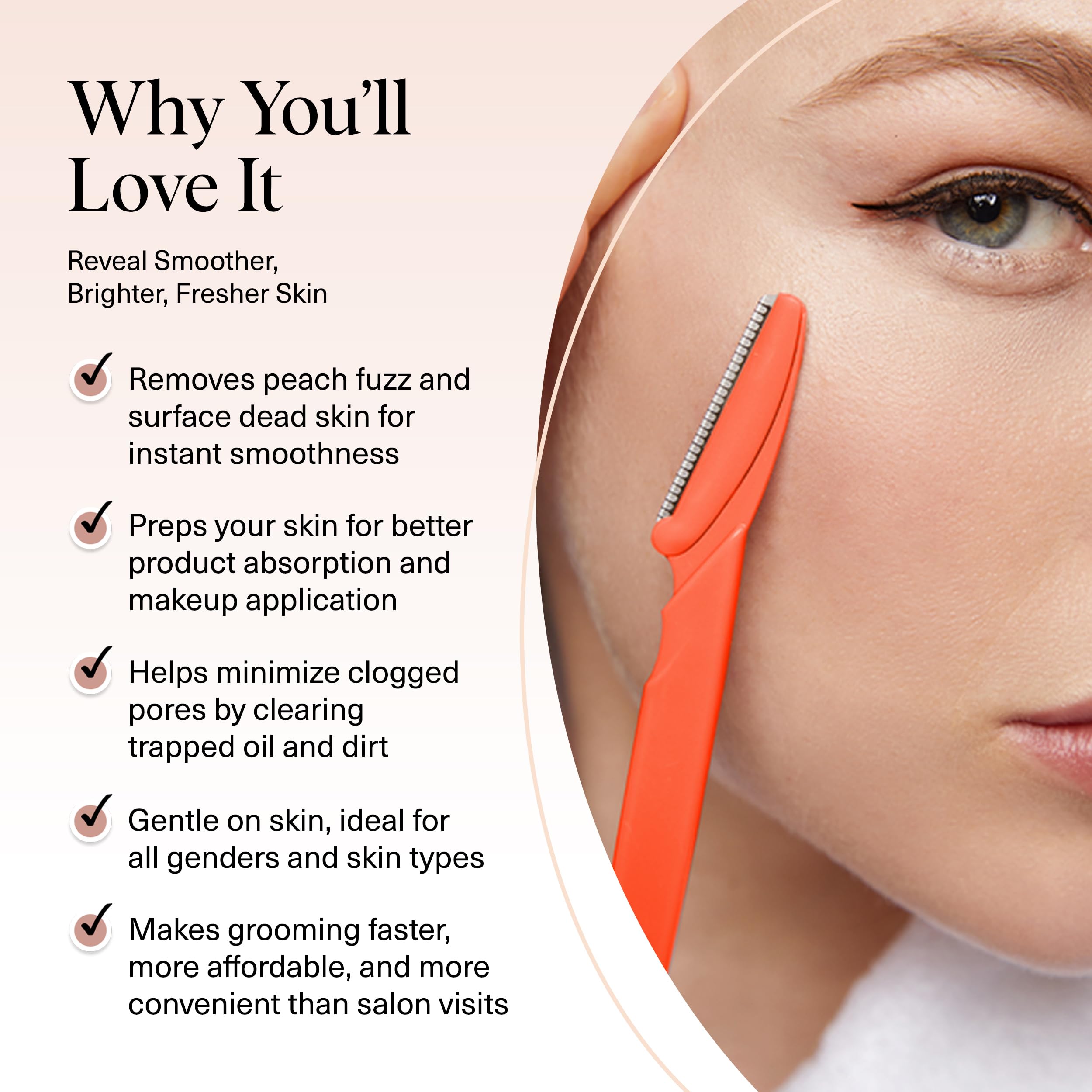 Kitsch Dermaplane Rasierer für Frauen Gesicht - Gesichtsrasierer für Frauen & Männer, Augenbrauentrimmer & Gesichtsrasierer - Peeling-Gesichtsrasierer & Hautpflegewerkzeug für glattere Haut - Koralle