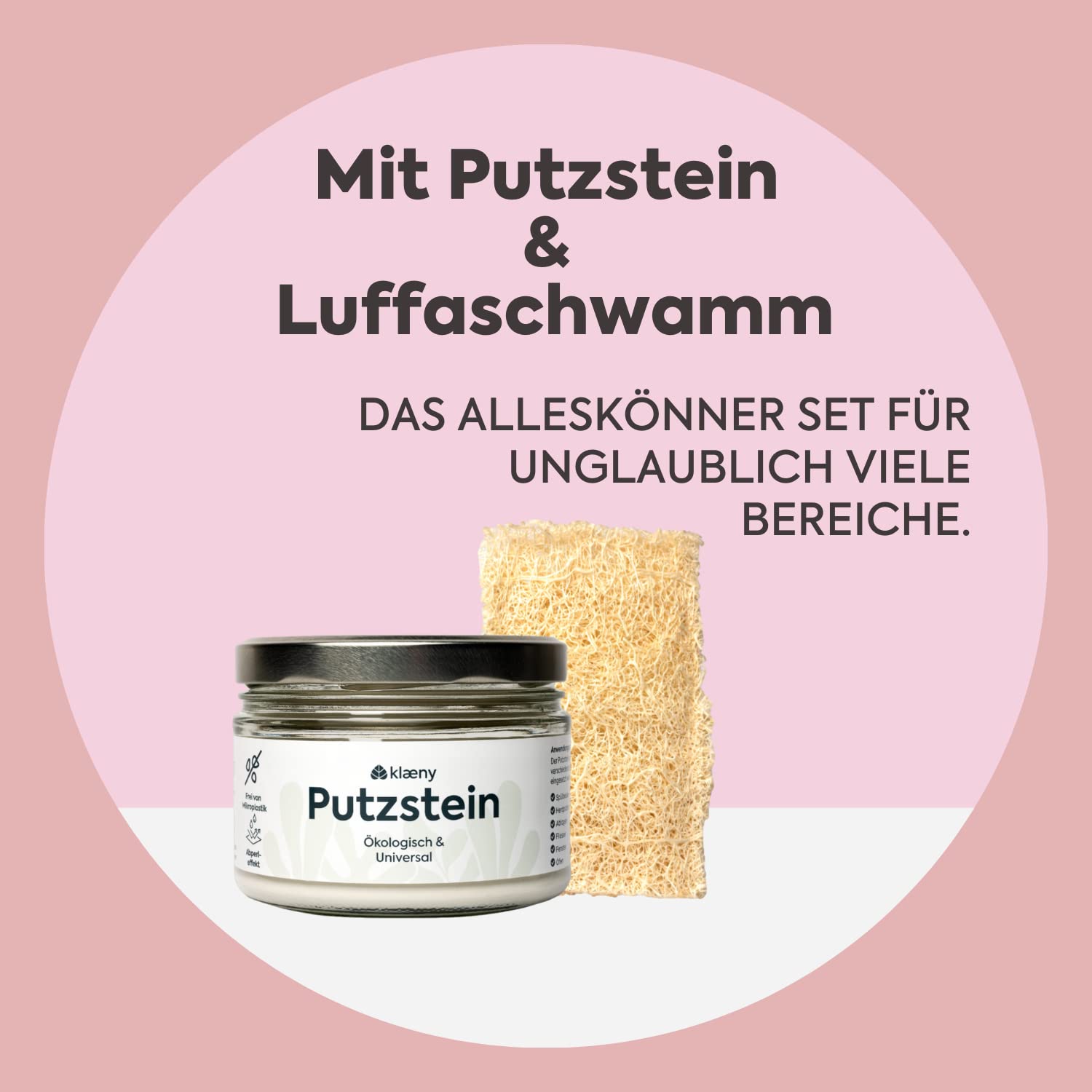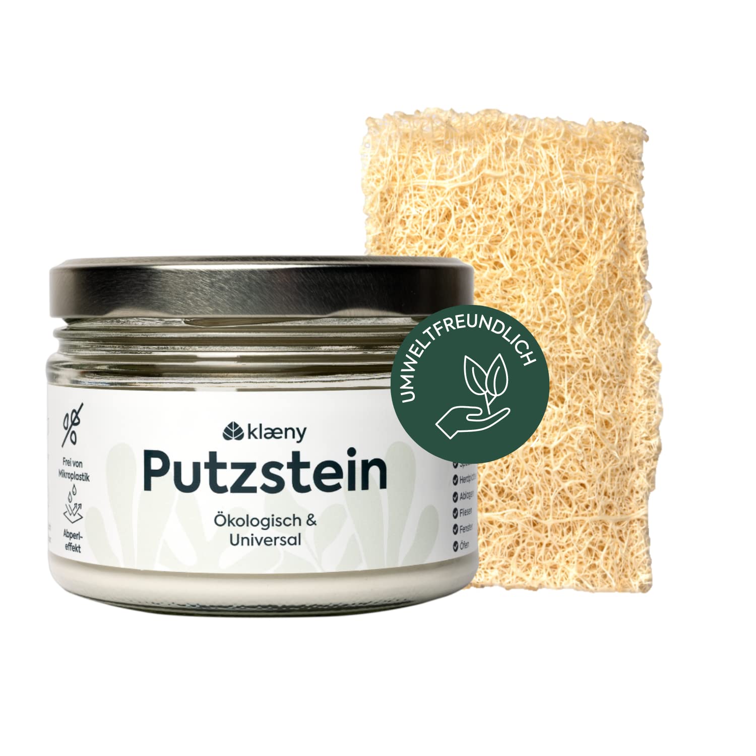 klæny® Nachhaltiger Putzstein Universalreiniger Set I mit Luffaschwamm I ökologisches Reinigungsmittel fürs Haus I Umweltfreundlich & Vegan I Allzweckreiniger Putzmittel I Mikroplastikfrei I 350 g