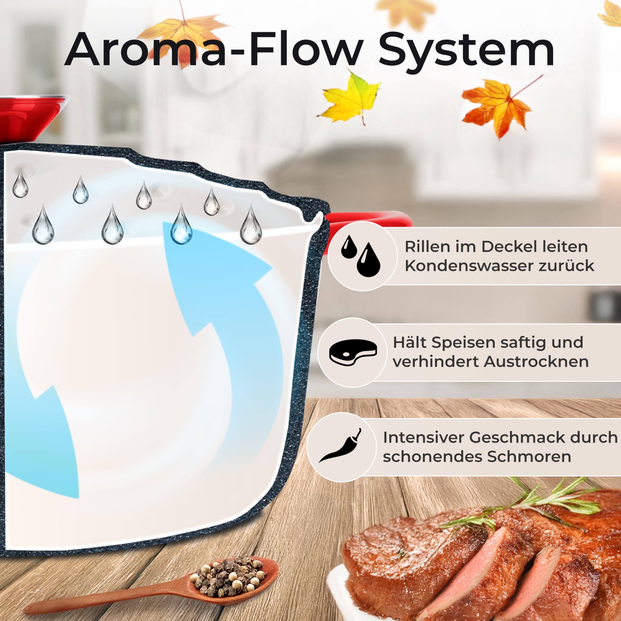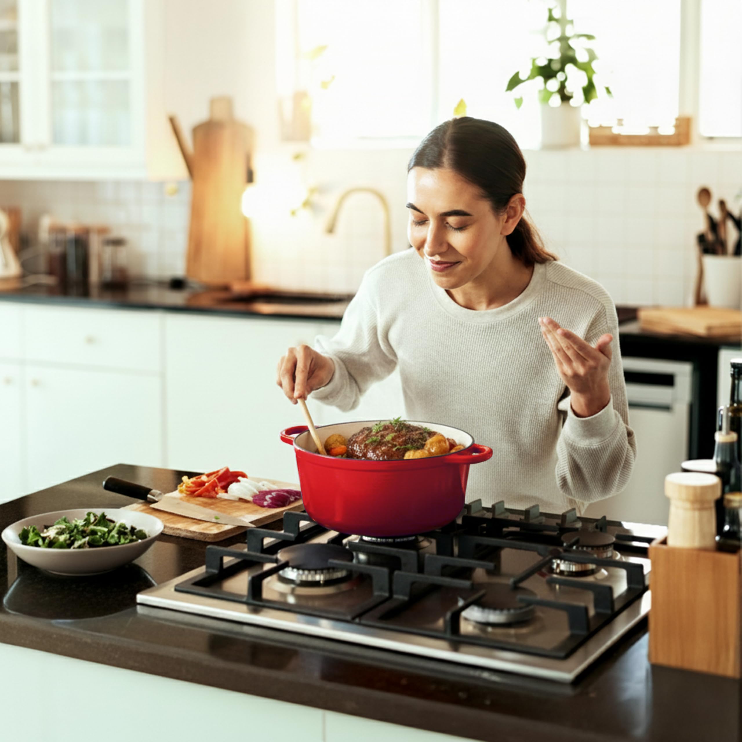 Der KLAMER Gusseisen Bräter bietet optimale Wärmeverteilung und hervorragende Wärmespeicherung für perfekte Garergebnisse bei jedem Gericht. Durch sein massives Gusseisen verteilt sich die Hitze gleichmässig im gesamten Schmortopf – ideal zum Schmoren, Braten, Anbraten oder Brotbacken wie im klassischen Dutch Oven. Dank seiner Vielseitigkeit eignet sich der Bräter für alle Herdarten inklusive Induktion und ist zudem backofenfest bis 250 °C. So können Sie ihn flexibel als Schmortopf, Bratentopf oder Brotbackform verwenden. Die spezielle Deckelstruktur sorgt für intensiven, natürlichen Saftkreislauf: Kondensiertes Aroma tropft kontinuierlich zurück in den Topf, wodurch Fleisch besonders zart, saftig und aromatisch bleibt. Die robuste Emaillierung macht den Topf langlebig, pflegeleicht und nahezu unverwüstlich. Für dauerhafte Qualität empfiehlt sich die Reinigung per Hand mit warmem Wasser. Ein hochwertiger Gusseisen-Bräter für alle, die Wert auf authentischen Geschmack, Vielseitigkeit und langlebige Küchenqualität legen.