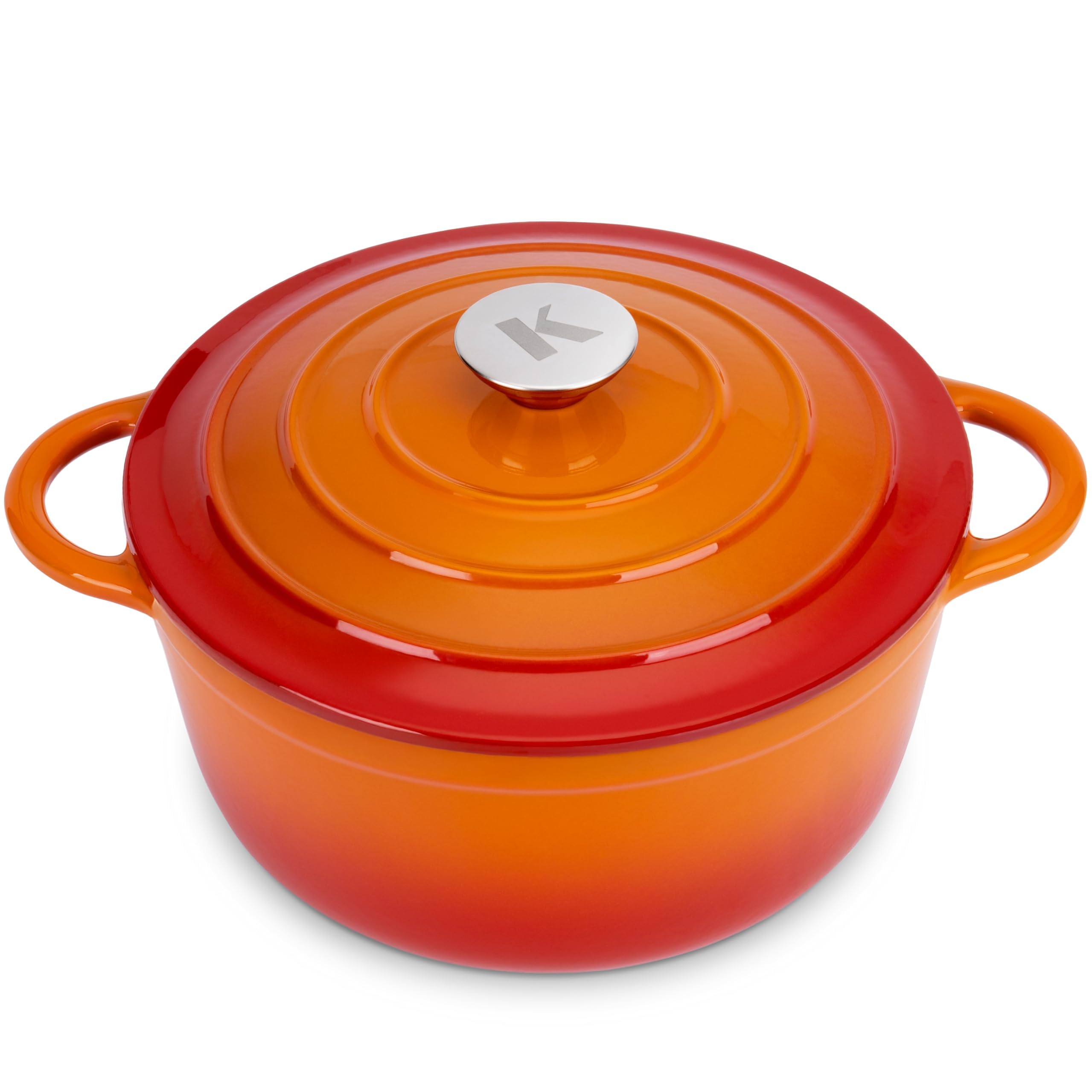 KLAMER Gusseisen Bräter 5 L, Gusseisen-Topf 25 cm backofengeeignet, Emaille Schmortopf mit Deckel, Perfekt zum Braten, Schmoren und Brot backen, mit digitalem Rezeptbuch