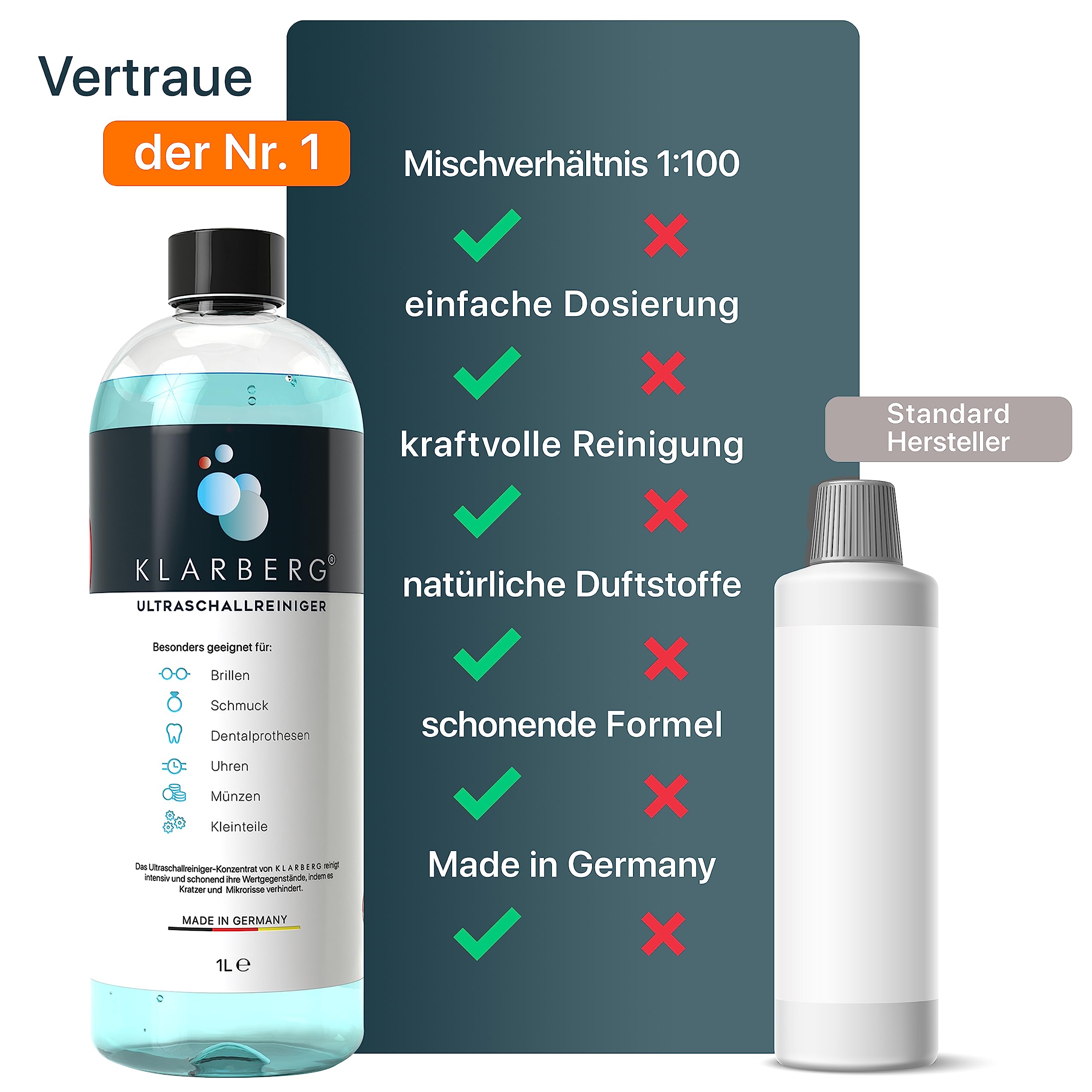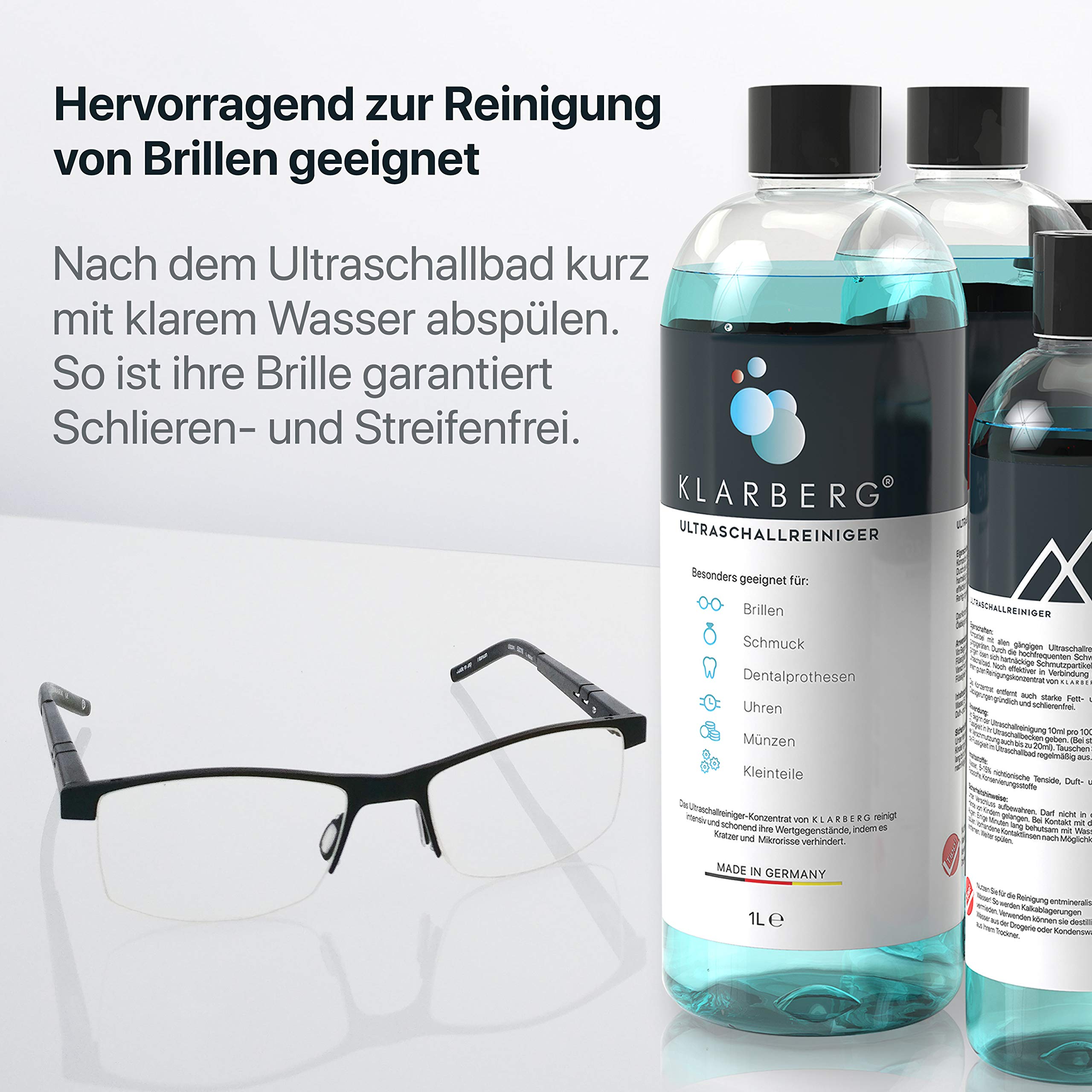 KLARBERG® Ultraschallreiniger Konzentrat 1 L – fuer Brillen, Schmuck, Zahnersatz & Uhren, geeignet fuer alle Ultraschallgeraete