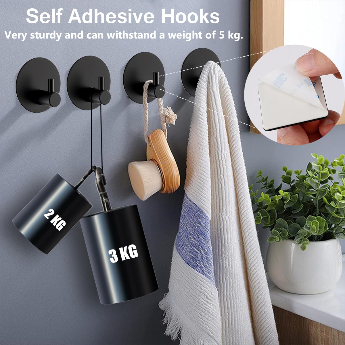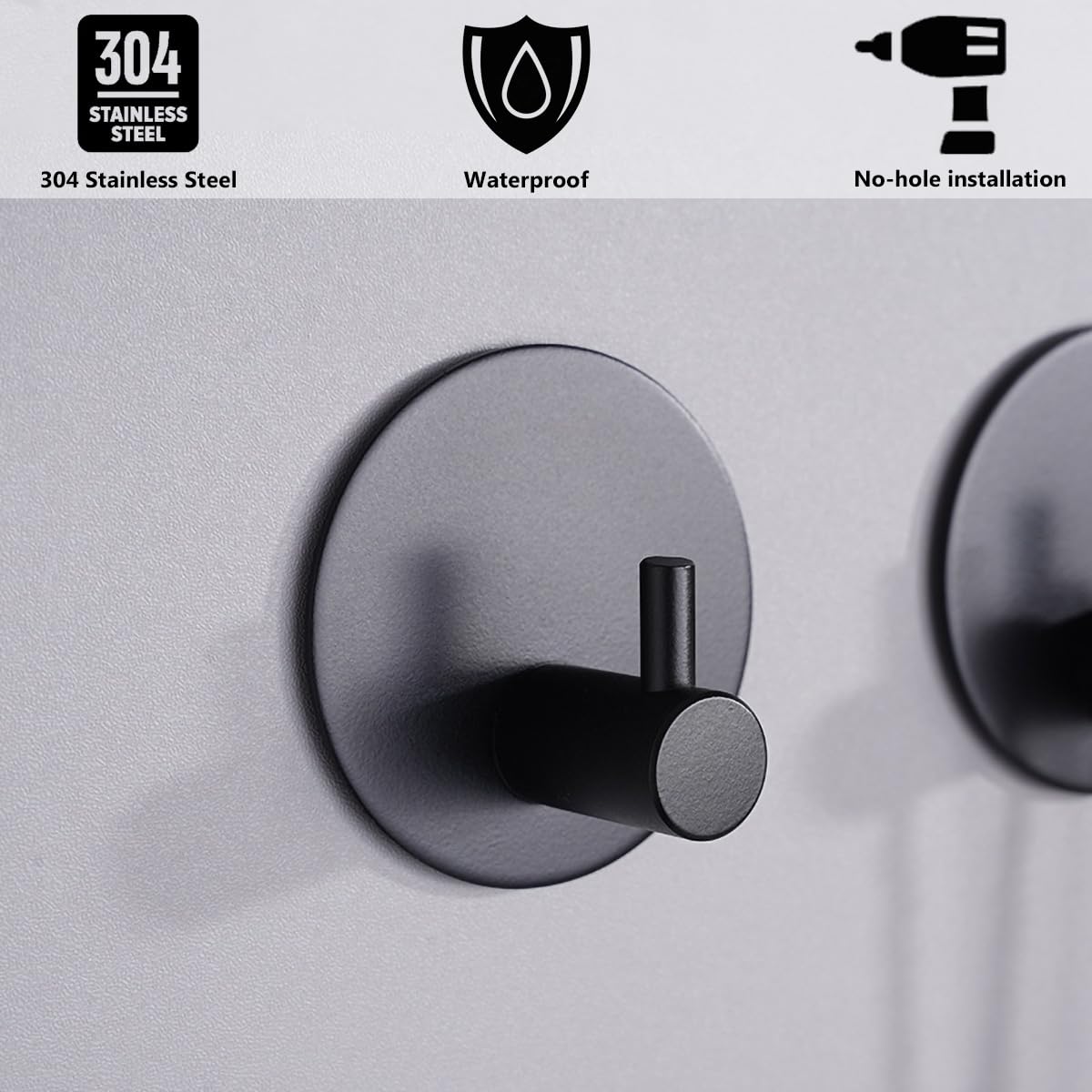 Klebehaken Extra Stark 2 Stück, Haken Selbstklebend Ohne Bohren Mit Klebepads Klebehaken Badezimmer Edelstahl SUS 304 Runde Haken Wasserdicht Handtuchhaken Haken Für Bad Toilette Küche (Schwarz)