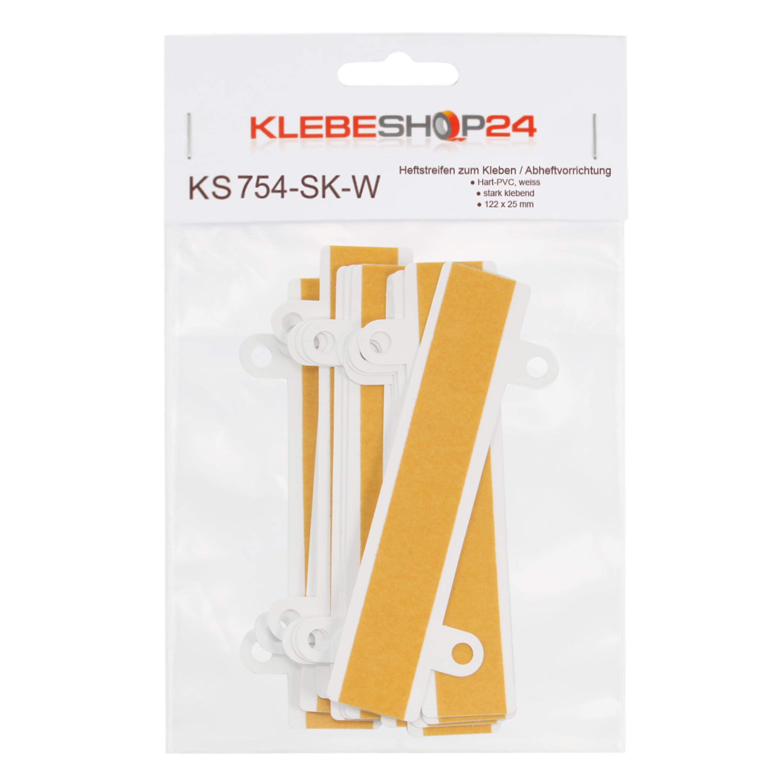 KLEBESHOP24 Heftstreifen zum Kleben | Abheftvorrichtung selbstklebend | 122 x 25 mm | Farbe & Menge wählen/Weiss, 1000 Stück