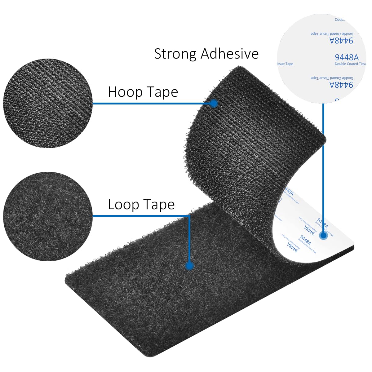 Klettband Selbstklebend Extra Stark, 2 Paare Klettverschluss Selbstklebender Schwarz Nylon Klebepads Klett Power Länge 20cm,Breit 10cm Klettbänder für Haus, Büro, Garage