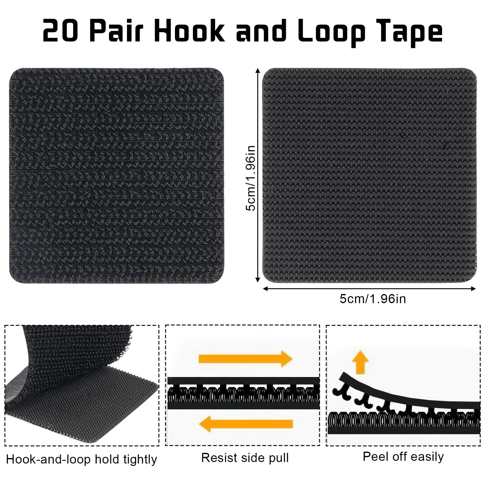 Klettband Selbstklebend Extra Stark, 20 Paare, Aktualisieren Klettverschluss Selbstklebend, Doppelseitige Klettpunkte Klett Selbstklebend, Klettstreifen zum Kleben, Schwarz, 5x5cm