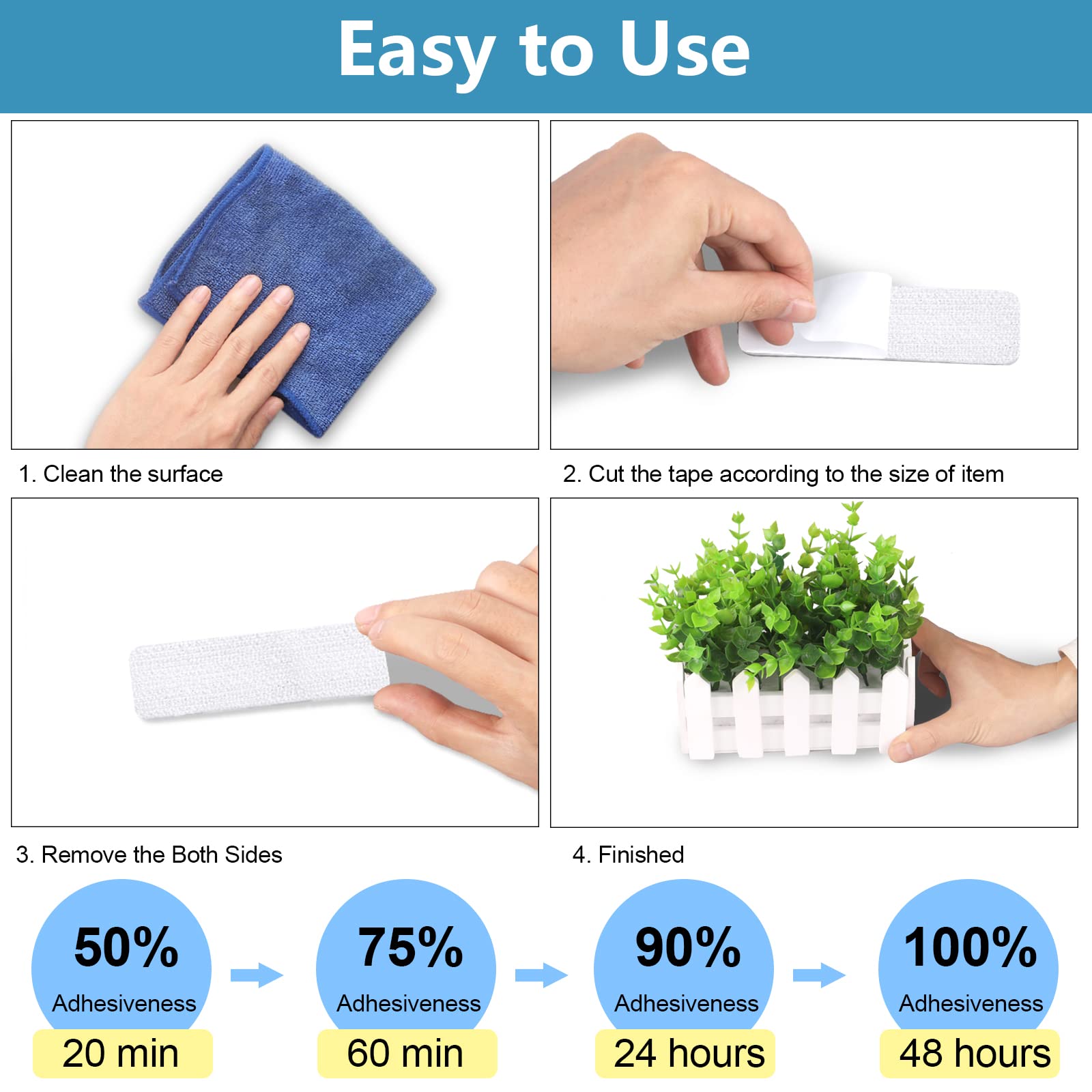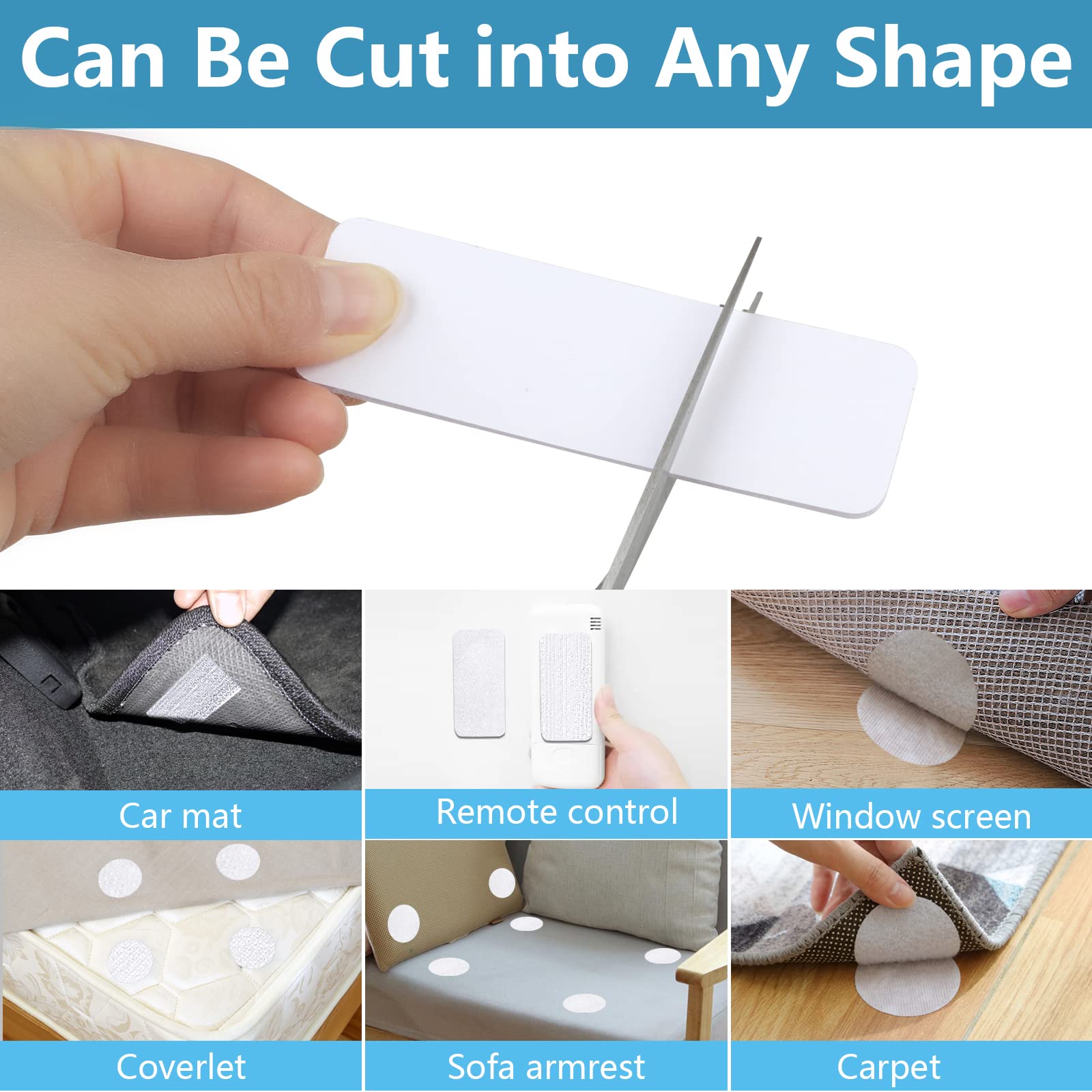 Funvce Klettband selbstklebend Industrieklett selbstklebend weisse Klebepads doppelseitig für Wände, Boden, Gläser, Kunststoff, rundes Rechteck