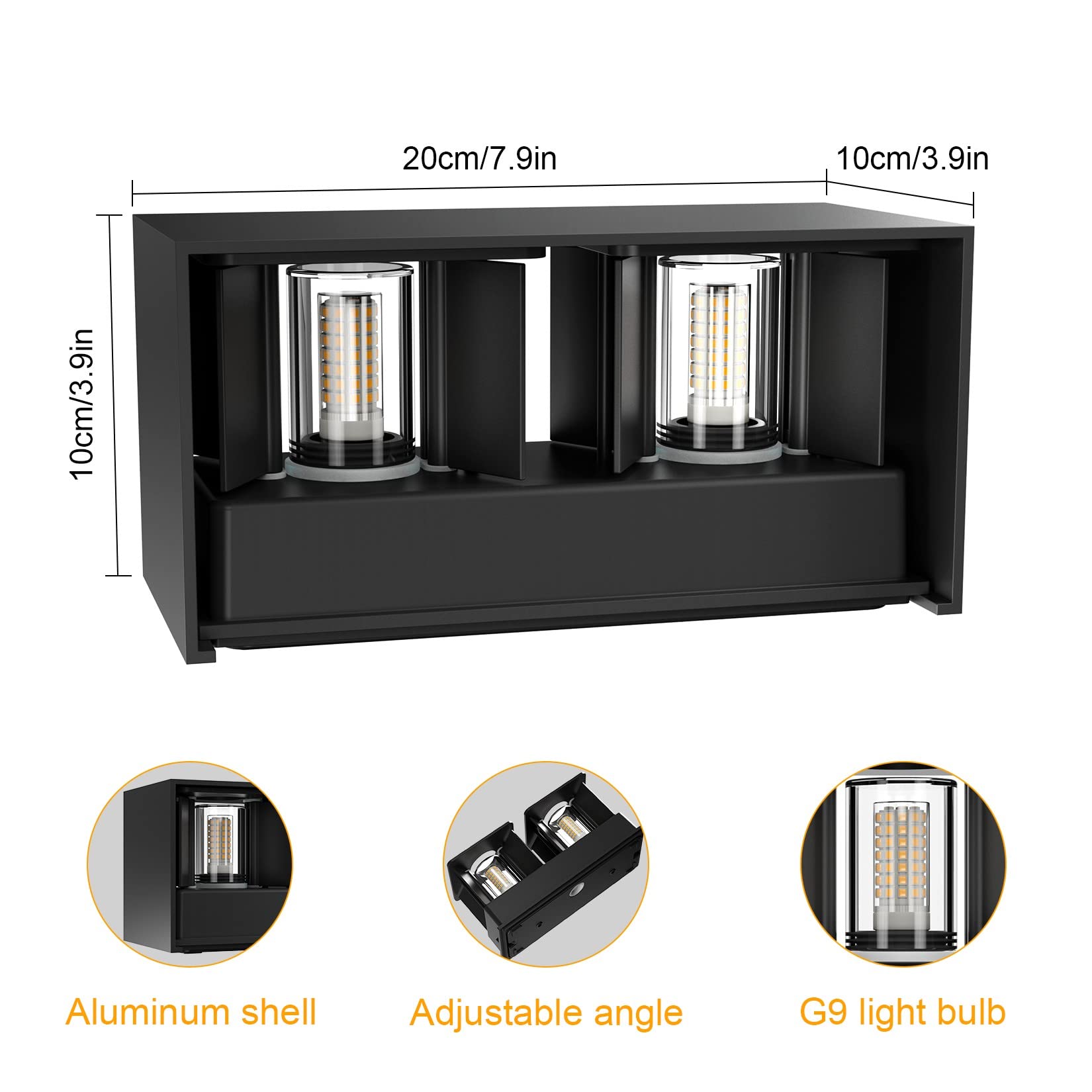 Klighten 18W Wandleuchte mit Austauschbarer G9 LED Lampe Warmweiss 3000K, LED Wandleuchte Innen/Aussen Einstellbar Abstrahlwinkel Aussenleuchte für Wohnzimmer Garten, IP54, Schwarz