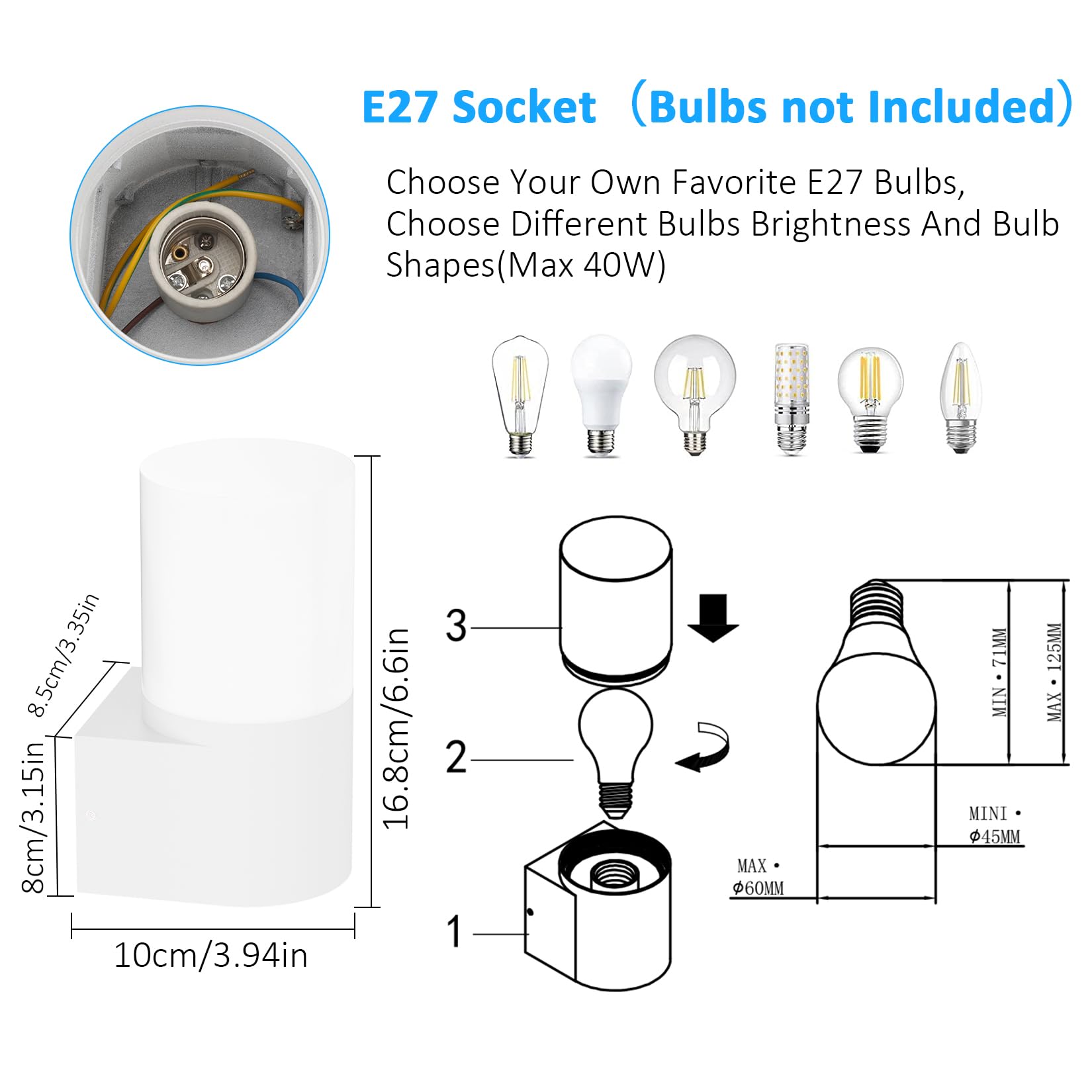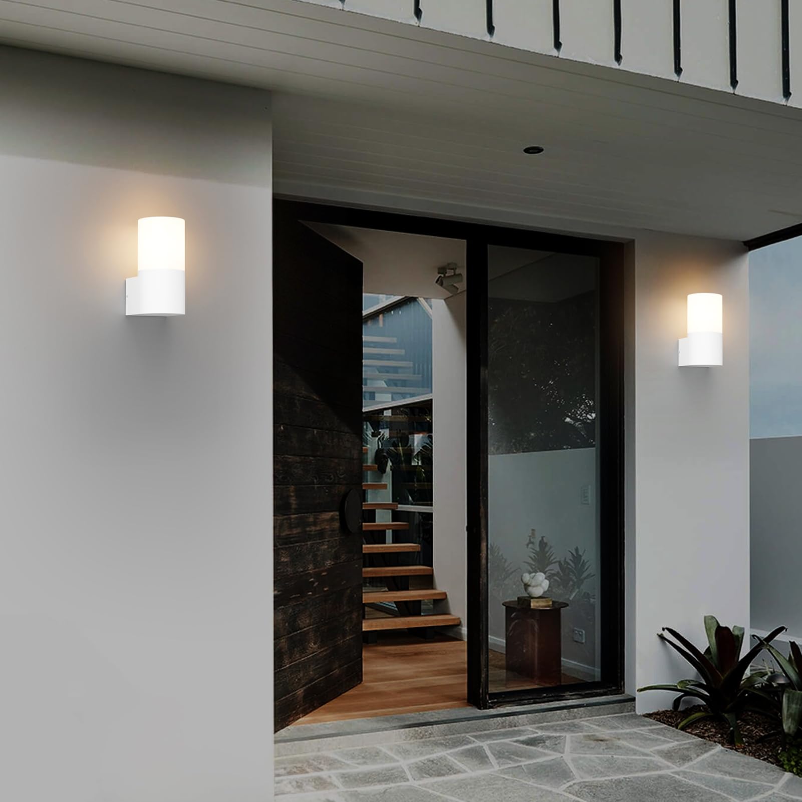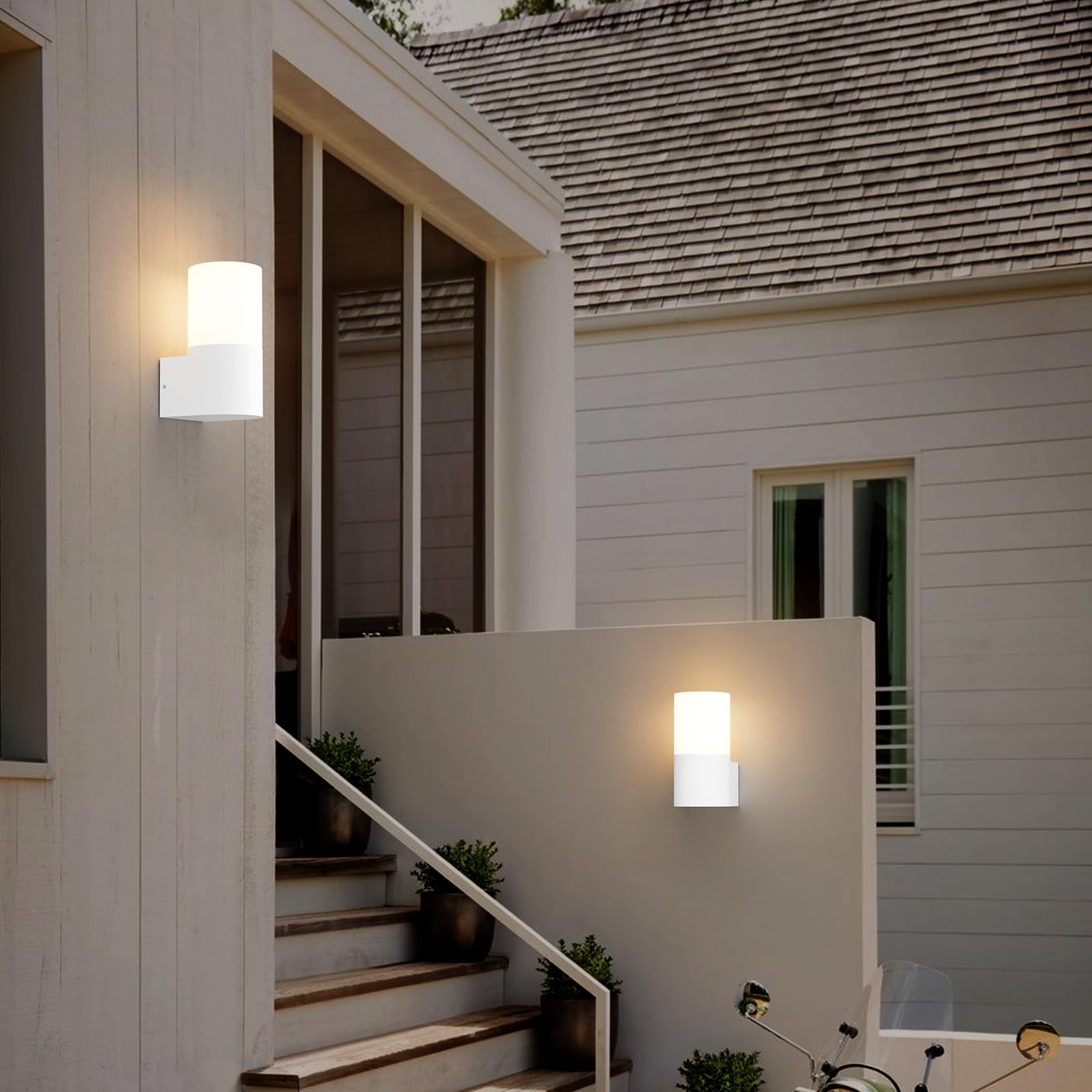 Klighten 2 Stück Aussenwandleuchten E27 Fassung Aussenleuchte, Wandleuchten Aussen/Innen, IP65 Aussenleuchte, Aluminium Aussenlampe, Wandlampe für Eingang Terrass, Max 40W, ohne Leuchtmittel, Weiss