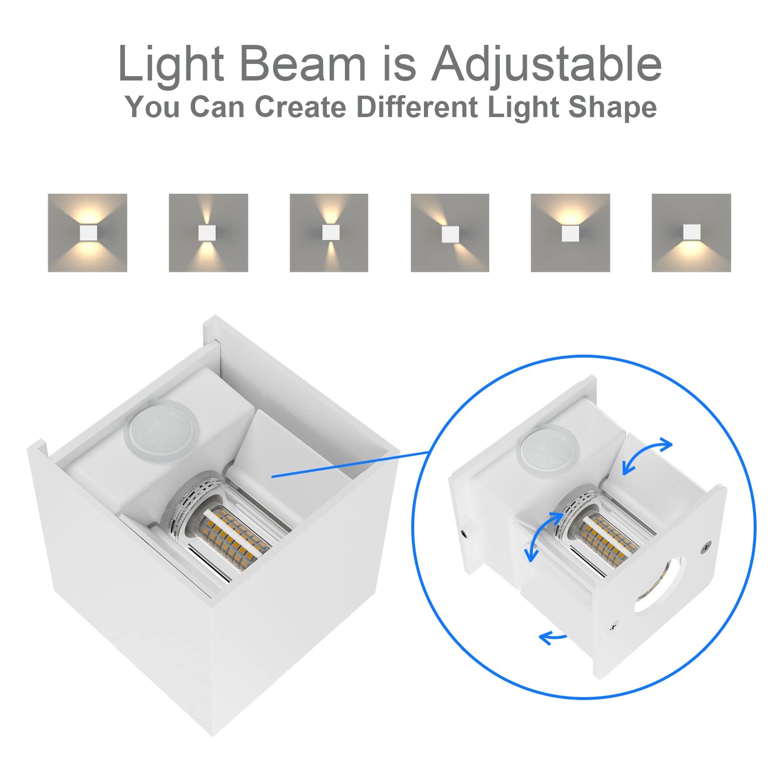 Klighten 2 Stück LED Wandleuchte mit Bewegungsmelder Innen/Aussen 3000K Aussenwandleuchte mit Bewegungsmelder Wandlampe Einstellbar Abstrahlwinkel, mit Austauschbarer G9 LED Lampe (Weiss)