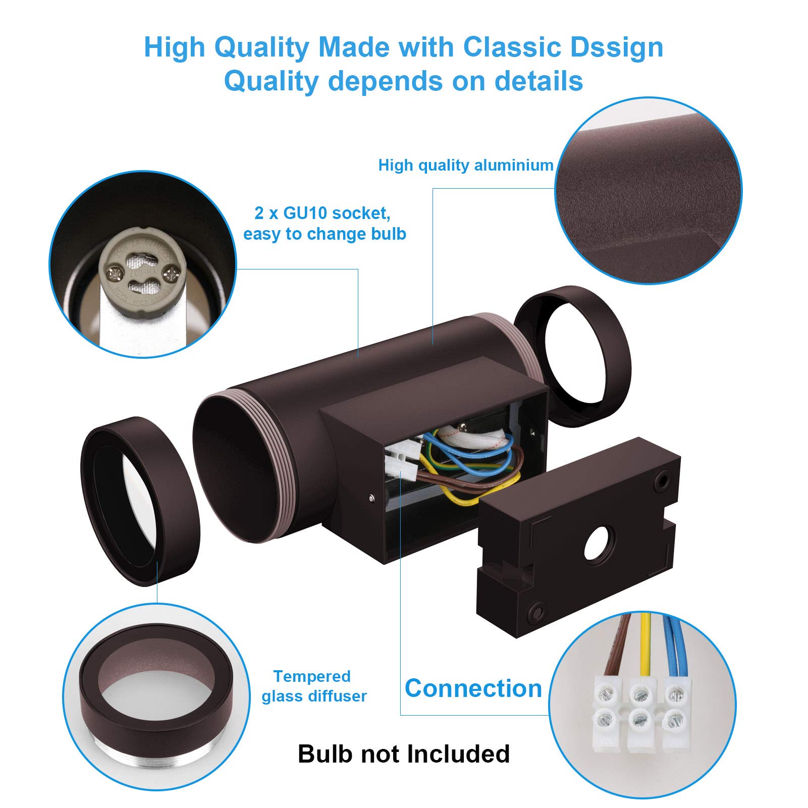Klighten 2 Stück Aussenleuchte Aussenlampe Wand, GU10 Aluminium Up Down Aussenwandleuchten, Wasserdichte IP65 Wandlampe Aussen Wandleuchte Aussen für Garten Terrasse Eingang, ohne Leuchtmittel, Bronze