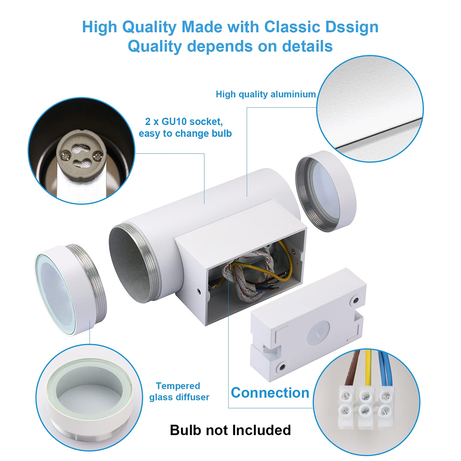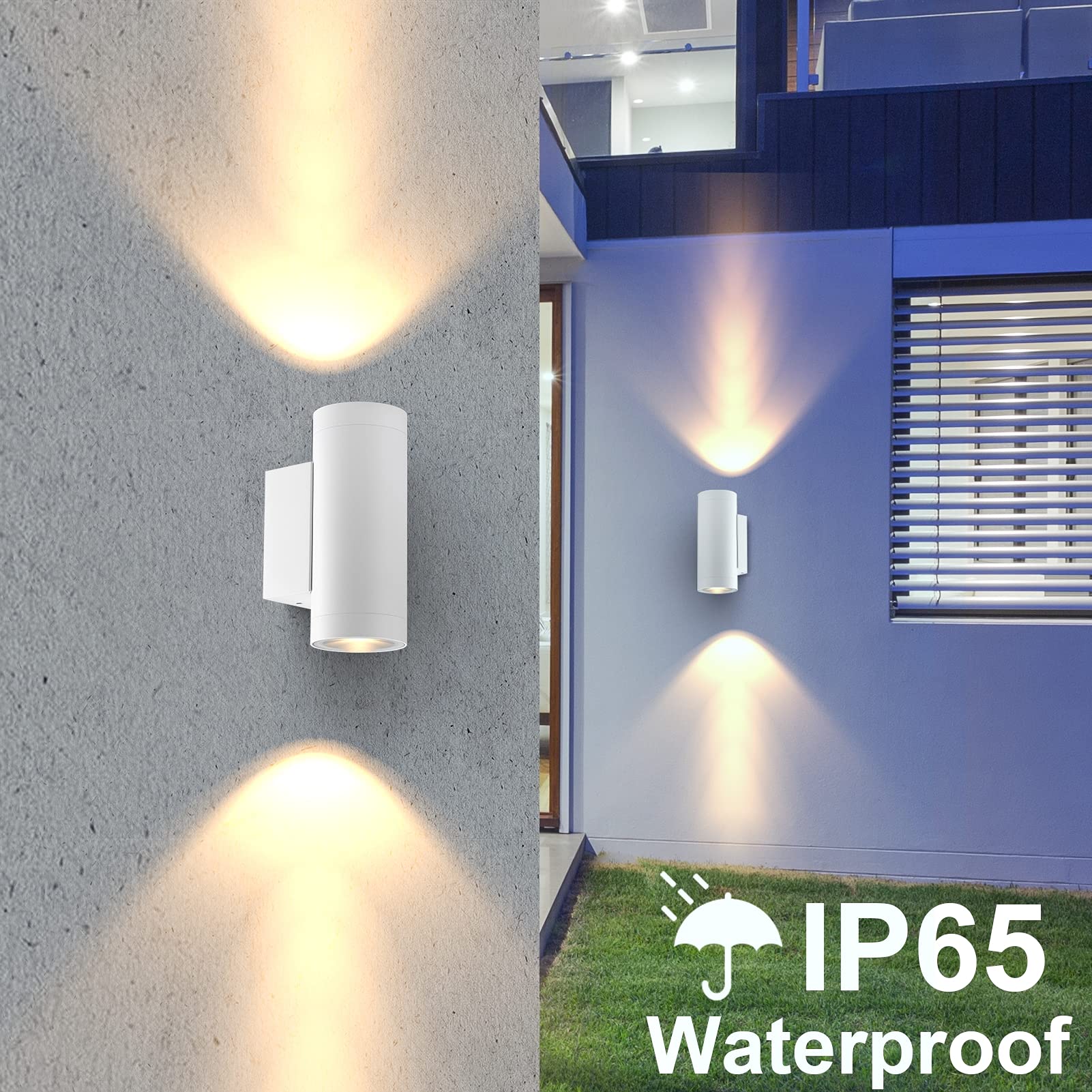 Klighten 2 Stück Aussenleuchte Aussenlampe Wand, GU10 Aluminium Up Down Aussenwandleuchten, Wasserdichte IP65 Wandlampe Aussen Wandleuchte Aussen für Eingang Garten Terrasse, ohne Leuchtmittel, Weiss
