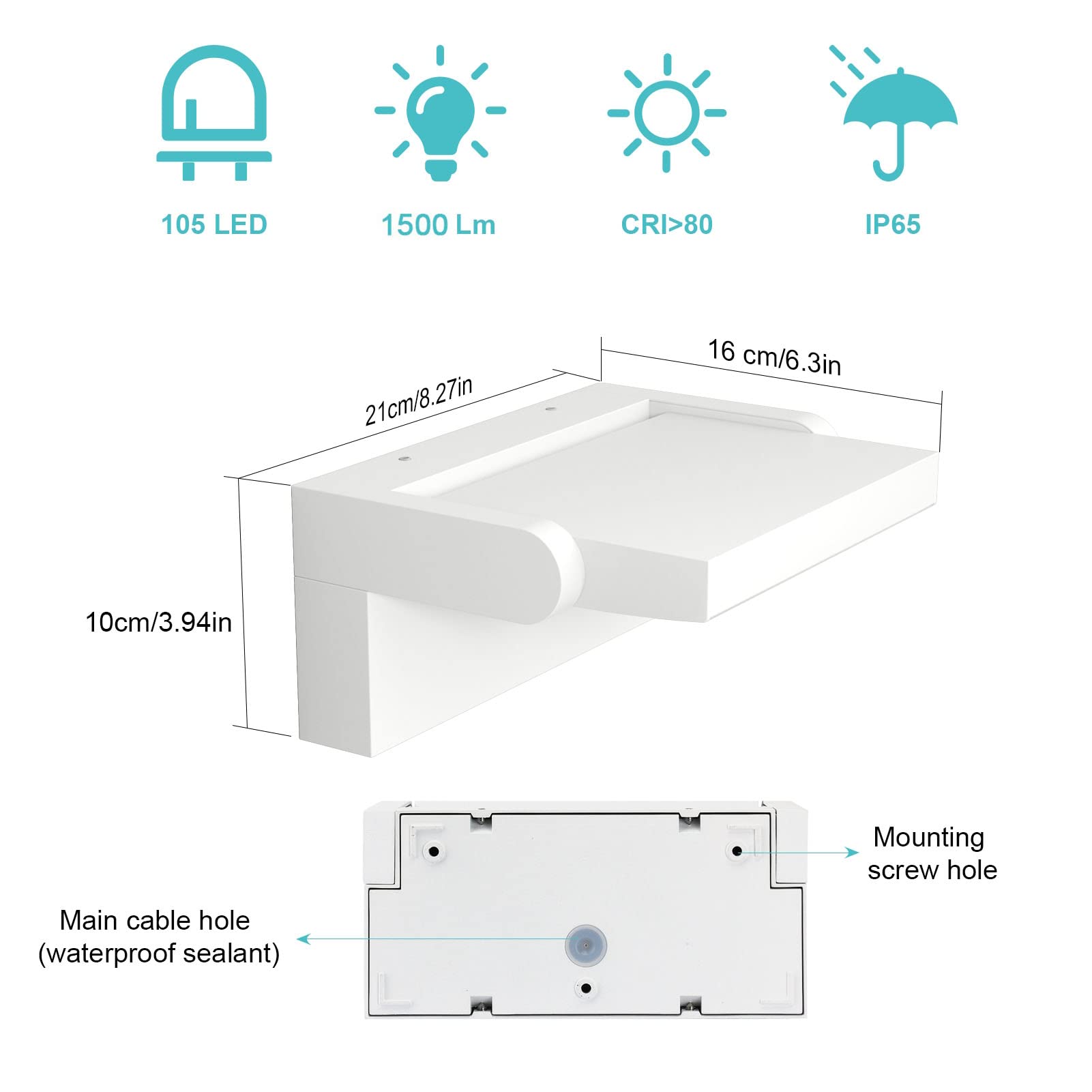 Klighten 24W Aussenwandleuchte Aussenleuchte, Wasserdicht IP65 Wandleuchte Innen Aussen Wandlampe mit Schwenkbar LED Panel Aussenlampe für Eingang Flur Balkone, 1500 LM, Warmweiss 2700K-3000K, Weiss