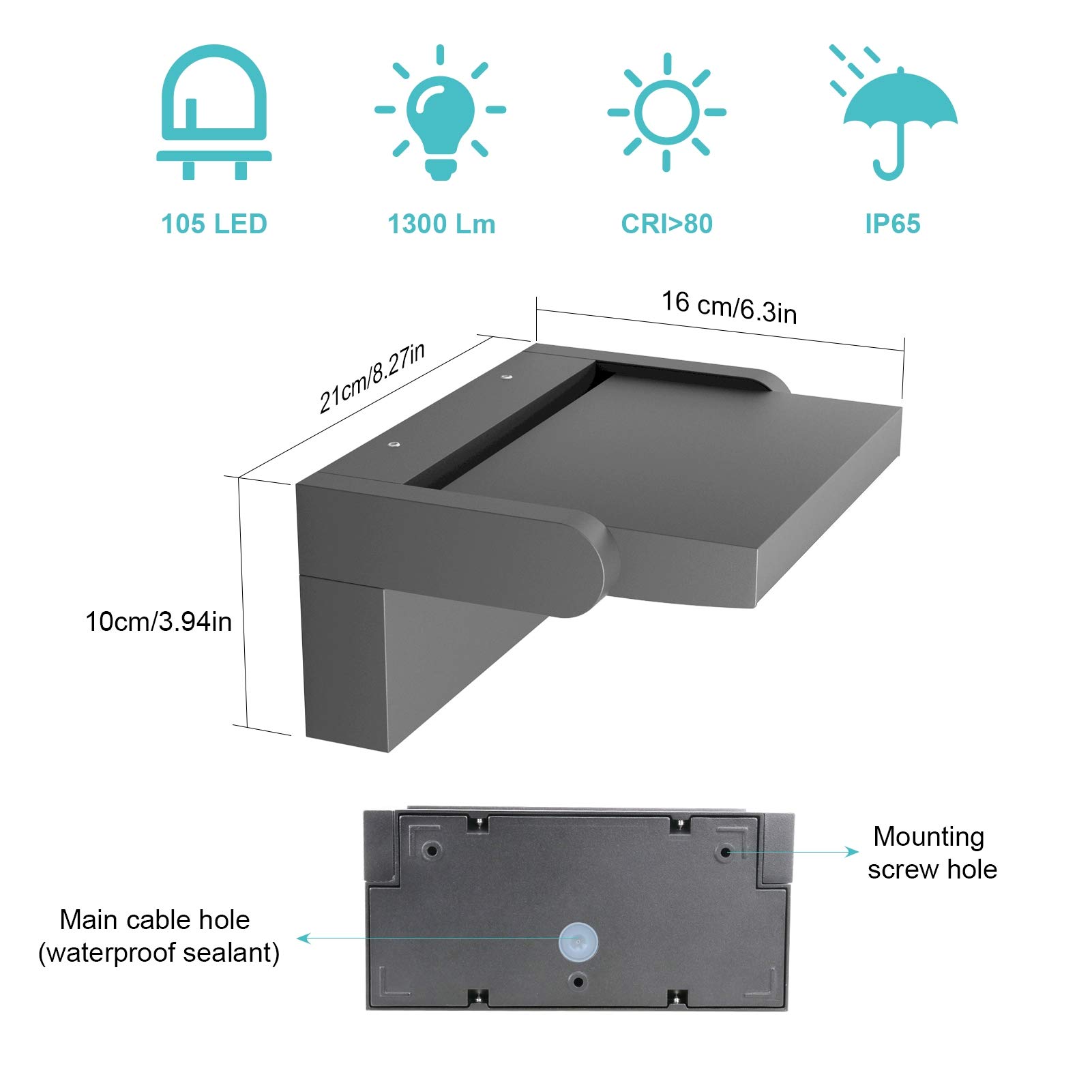 Klighten 24W LED Wandleuchte Aussen Innen Moderne Aussenleuchte IP65