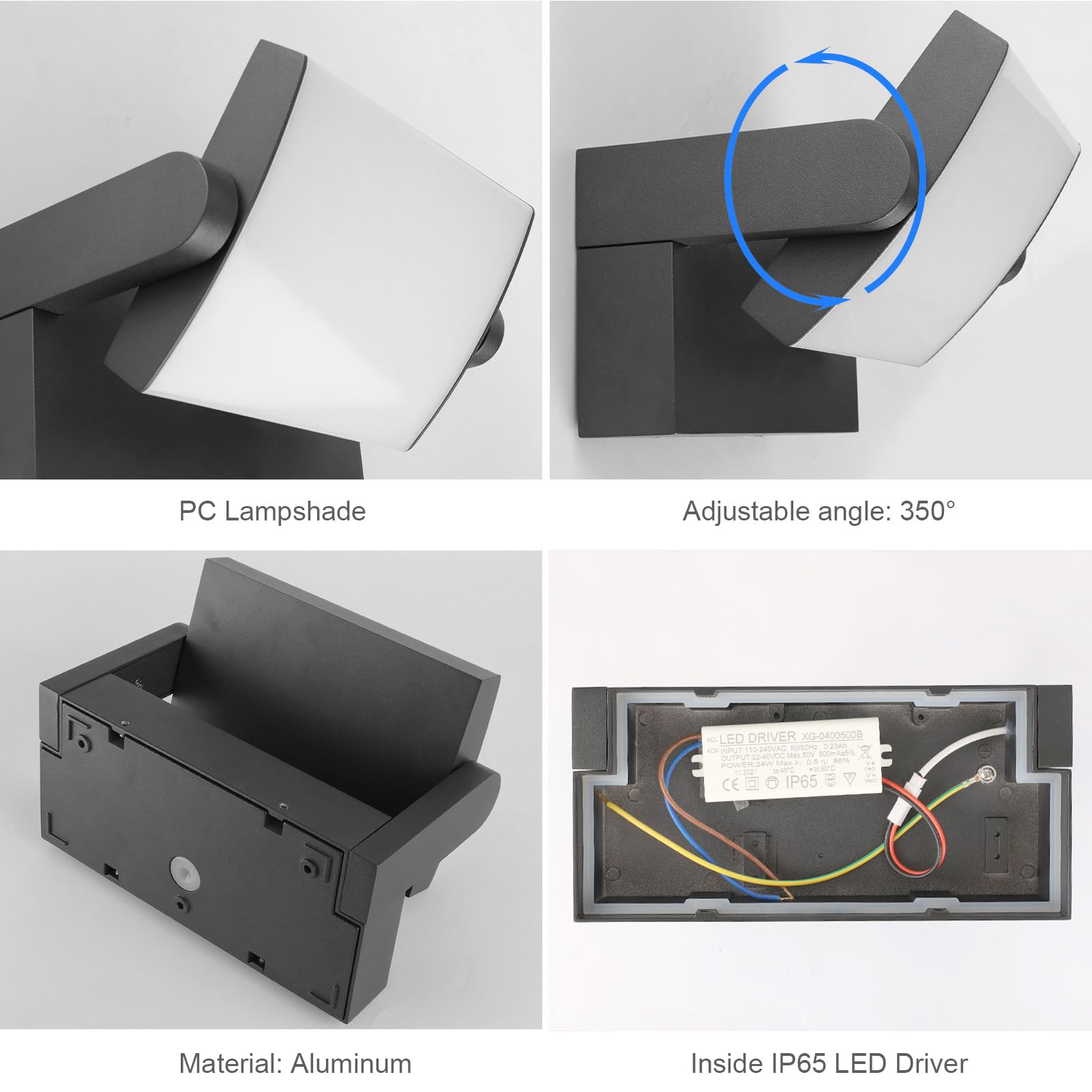 Klighten 24W Wandleuchte Aussen Innen, Wasserdicht IP65 Aussenwandleuchte Modern Wandlampe mit Schwenkbar LED Panel Aussenlampe für Terrasse Eingang, 1500 Lumen, Dunkelgrau, Natürliches Weiss 4000K