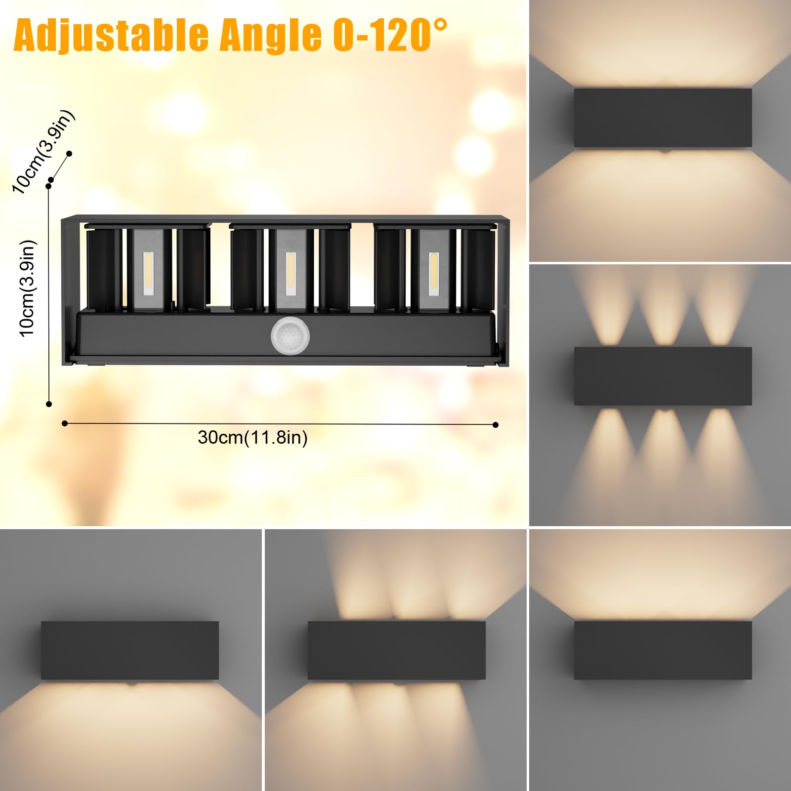 - 2.【Einstellbarer Lichtstrahl】Aussenwandleuchte mit Bewegungsmelder kann den Abstrahlwinkel (0°-120°) einstellen, um verschiedene Lichtformen zu erzeugen. Bieten Sie schöne Lichteffekte und verschiedene gute Atmosphären für Beleuchtung oder Dekoration.