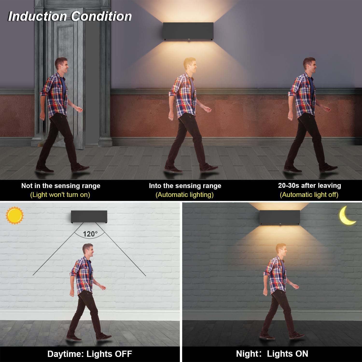 - 4.【Innen und Aussen geeignet】Diese wasserdichte LED Wandlampen mit Bewegungsmelder kann im Freien im Park, Garten ect installiert werden. Es ist auch für den Innenbereich wie Wohnzimmer, Schlafzimmer, Hotel, Balkon, Flur.