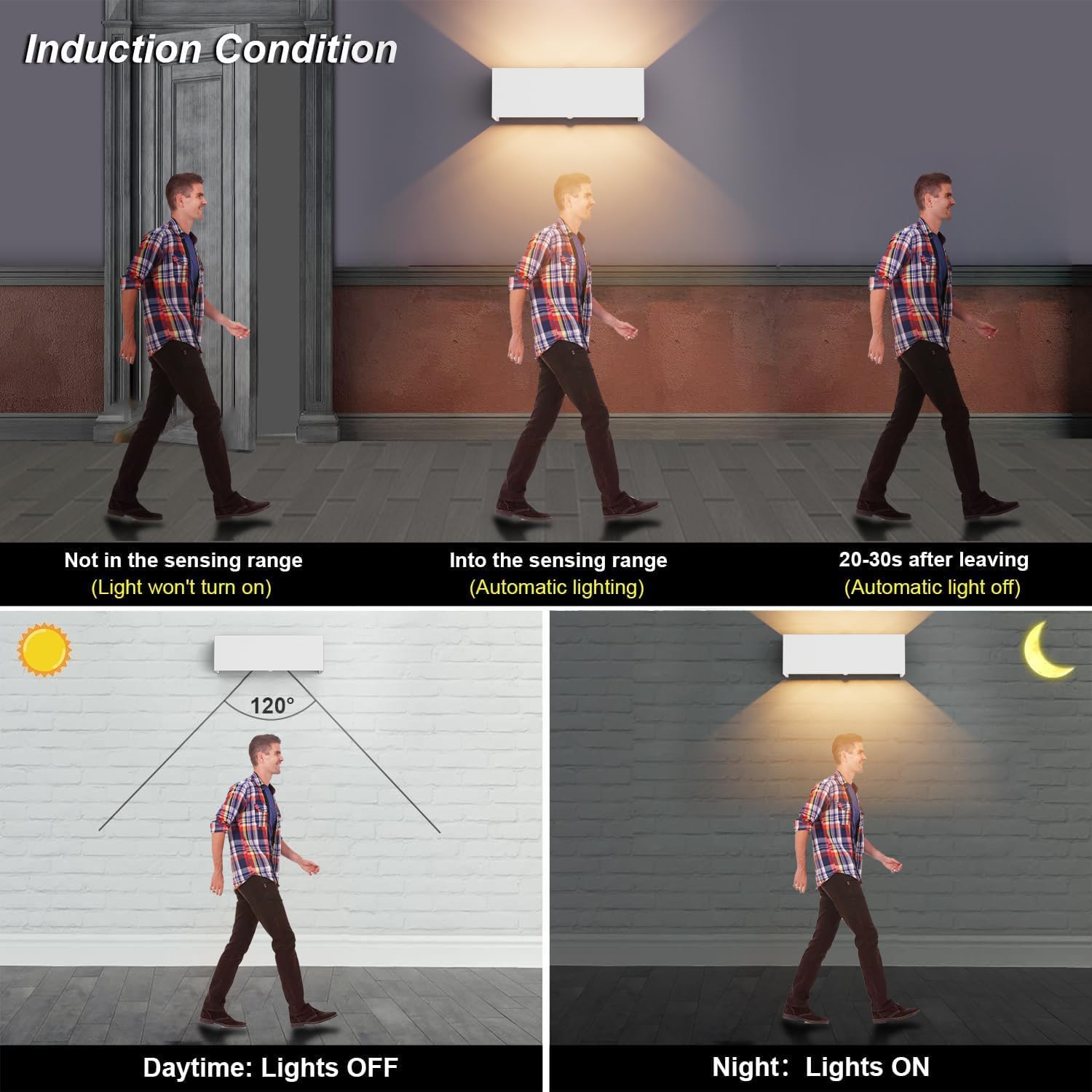- 1.【Bewegungssensorfunktion】Klighten aussenlampe mit bewegungsmelder ist einem Bewegungssensor ausgestattet.Tagsüber wird die Aussenleuchten automatisch ausgeschaltet. Nachts wird die Wandleuchte von einem Bewegungssensor beleuchtet. Die LED Wandbeleuchtung kann die Bewegung des menschlichen Körpers erfassen und die Wandleuchte automatisch ein- und ausschalten.