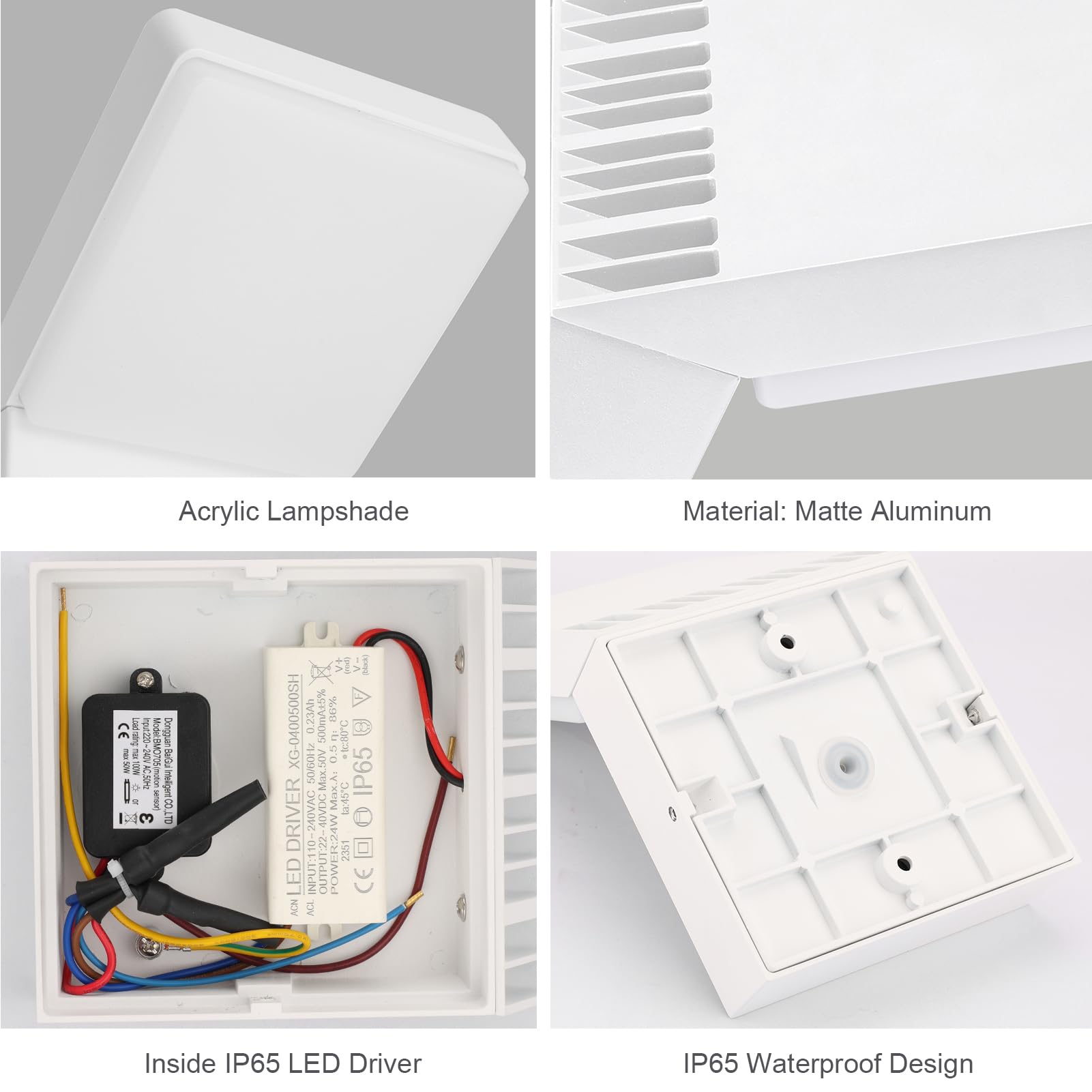 - 【Einfache Installation】Diese Wandleuchte mit schlichtem Design und Matt Oberfläche einen elegante und modernen Eindruck. Aussenleuchte mit Anleitung und Zubehör, können Sie das Wandlampe einfach auf der Oberfläche der Wand montieren, aber zu Ihrer Sicherheit installieren Sie bitte unter der Anleitung eines Fachmanns.