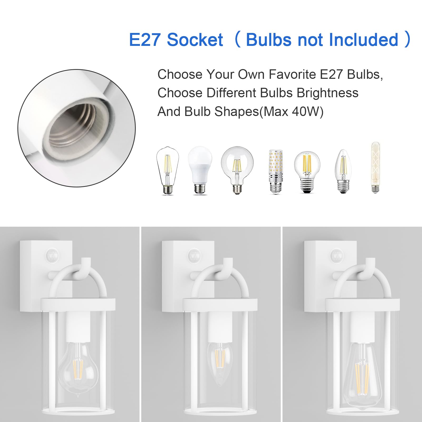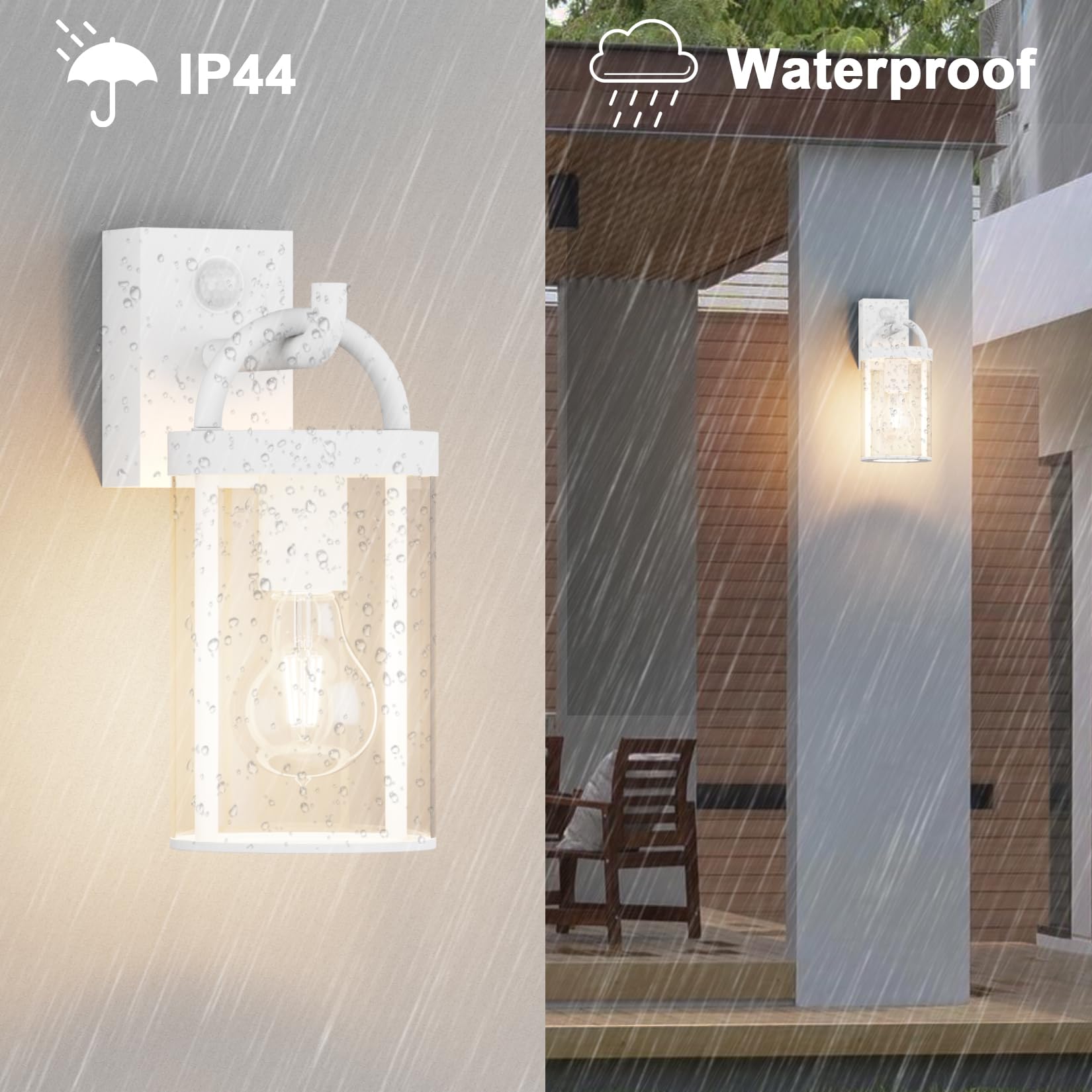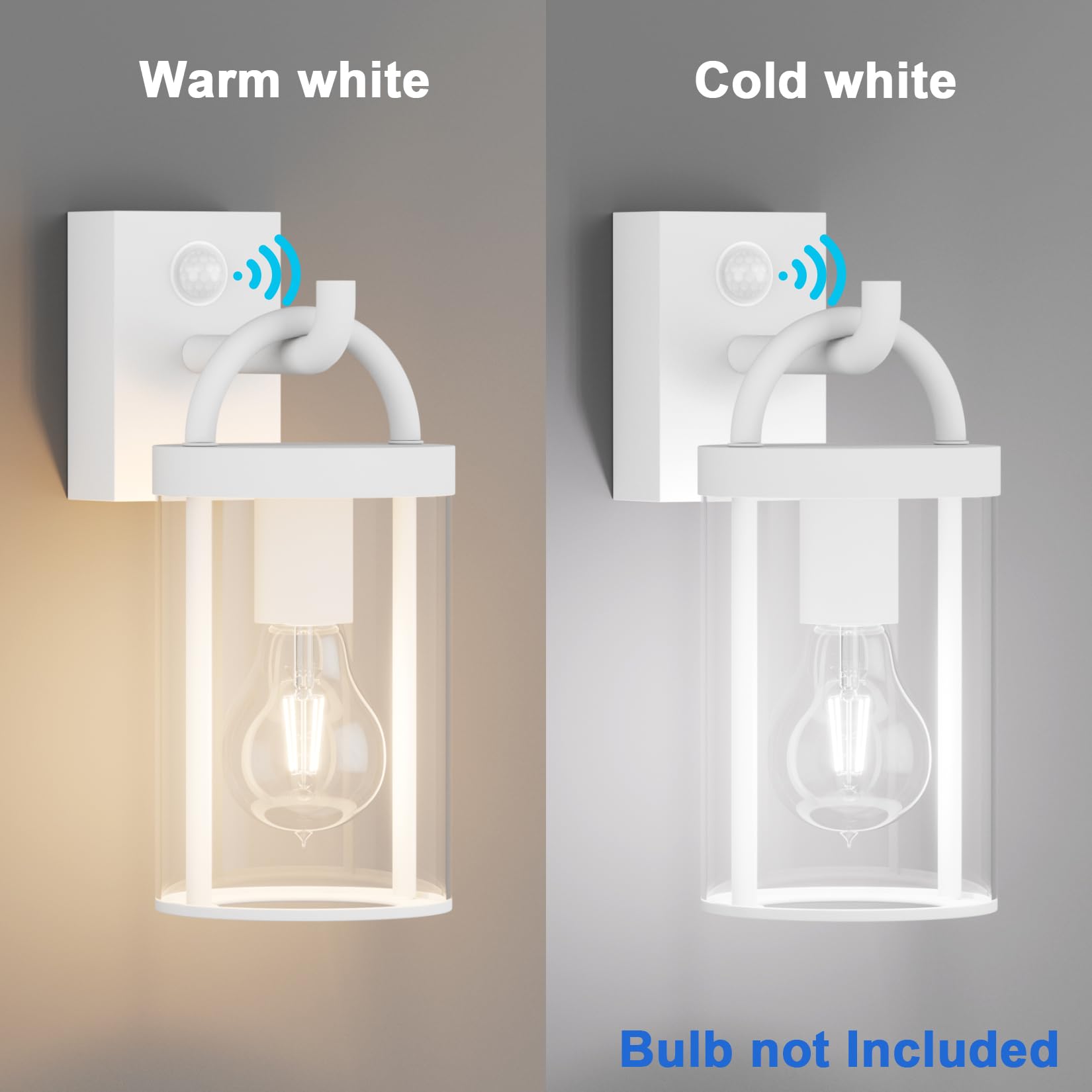 Klighten Aussenwandleuchte Vintage Industrial, Weiss Wandleuchte Aussen mit Bewegungsmelder, E27 Aussenlampe, Aluminium Wandlampe Industrie, für Terrasse Garten Fassaden, 40W Max, IP44, ohne Leuchtmitte