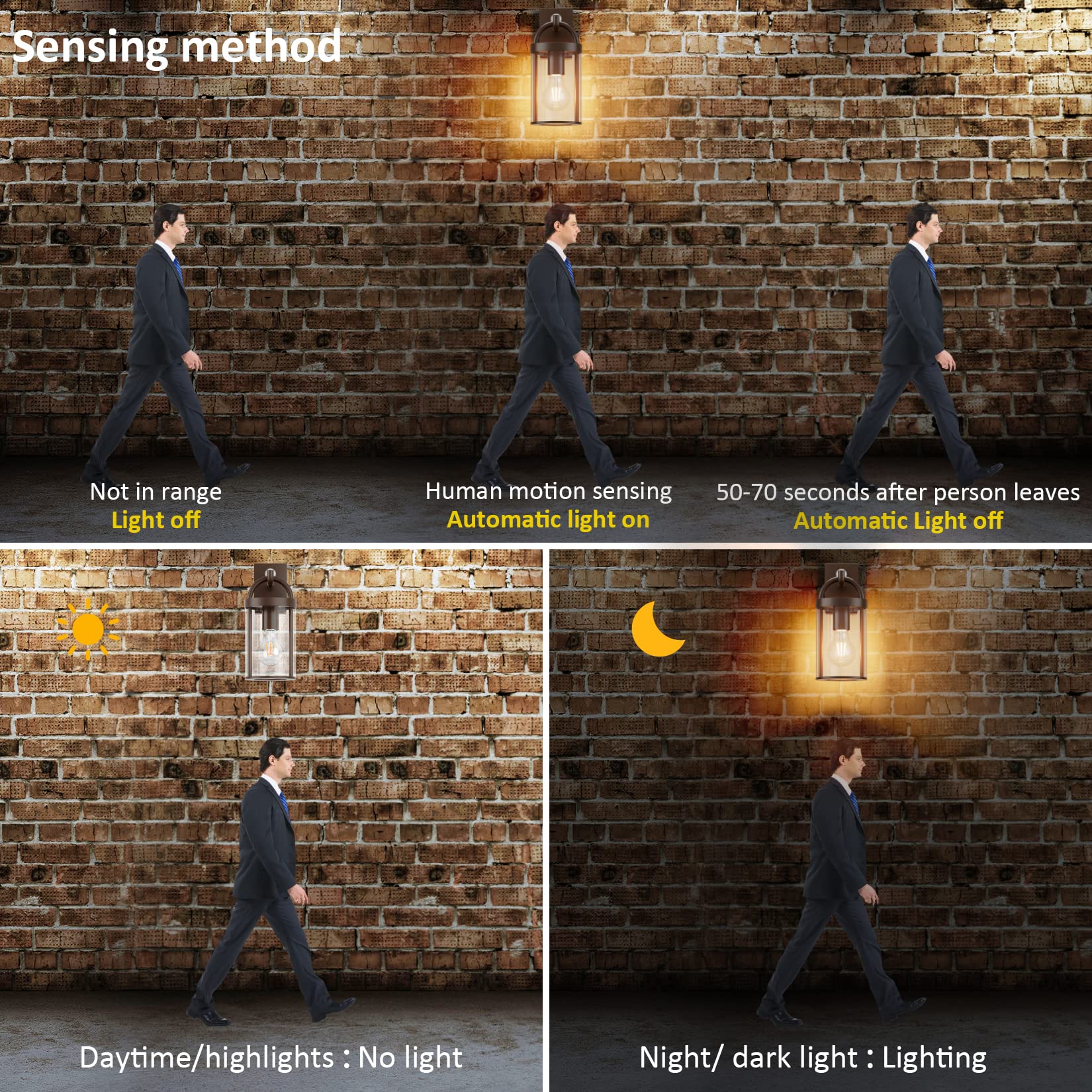 - 【Bewegungsmelderfunktion】: Retro-Wandleuchte mit Bewegungsmelder, eingebautem Bewegungsmelder und menschlichem Infrarotsensor. In der Nacht schaltet sich das Licht ein, wenn jemand den Erfassungsbereich betritt. Wenn keine menschliche Bewegung erkannt wird, schaltet es sich automatisch aus. Tagsüber schaltet sich die Wandleuchte automatisch aus, was sie energieeffizienter, komfortabler und umweltfreundlicher macht.Nicht Dimmbar
