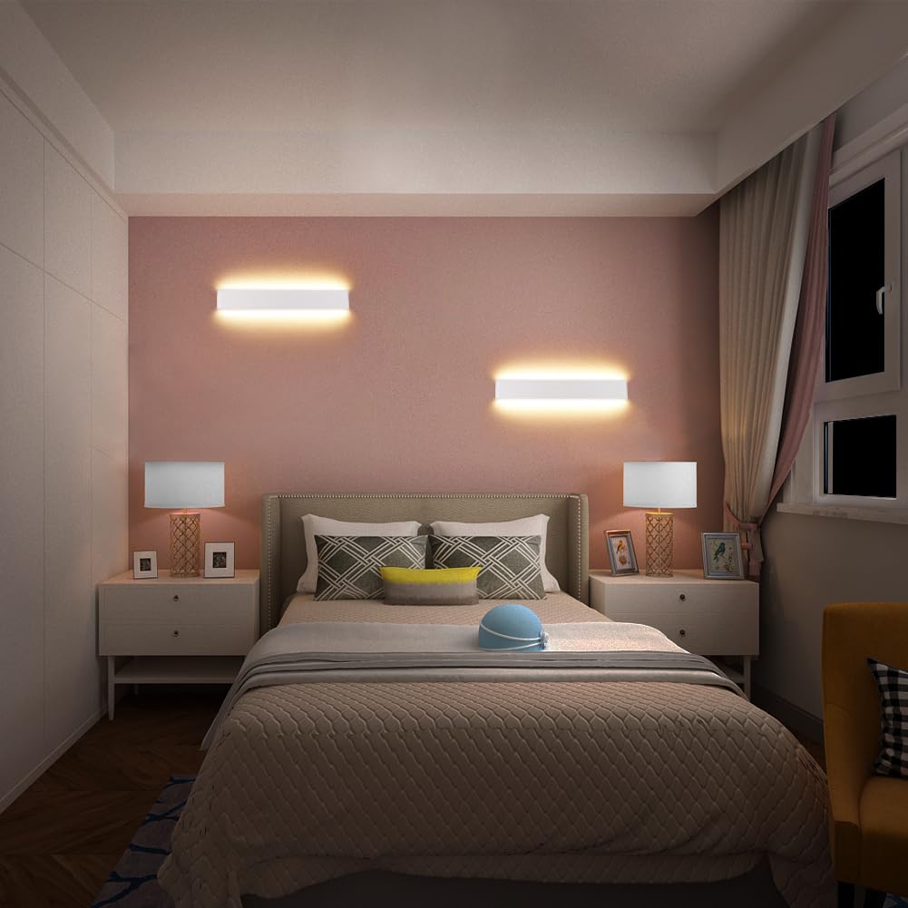 Klighten Wandleuchte LED Innen,16W, Moderne Wandbeleuchtung, 51cm,Up Down Wandlampe,Warmweiss LED Innen Wandstrahler für Schlafzimmer, Wohnzimmer, Treppen und Badezimmer,Weiss
