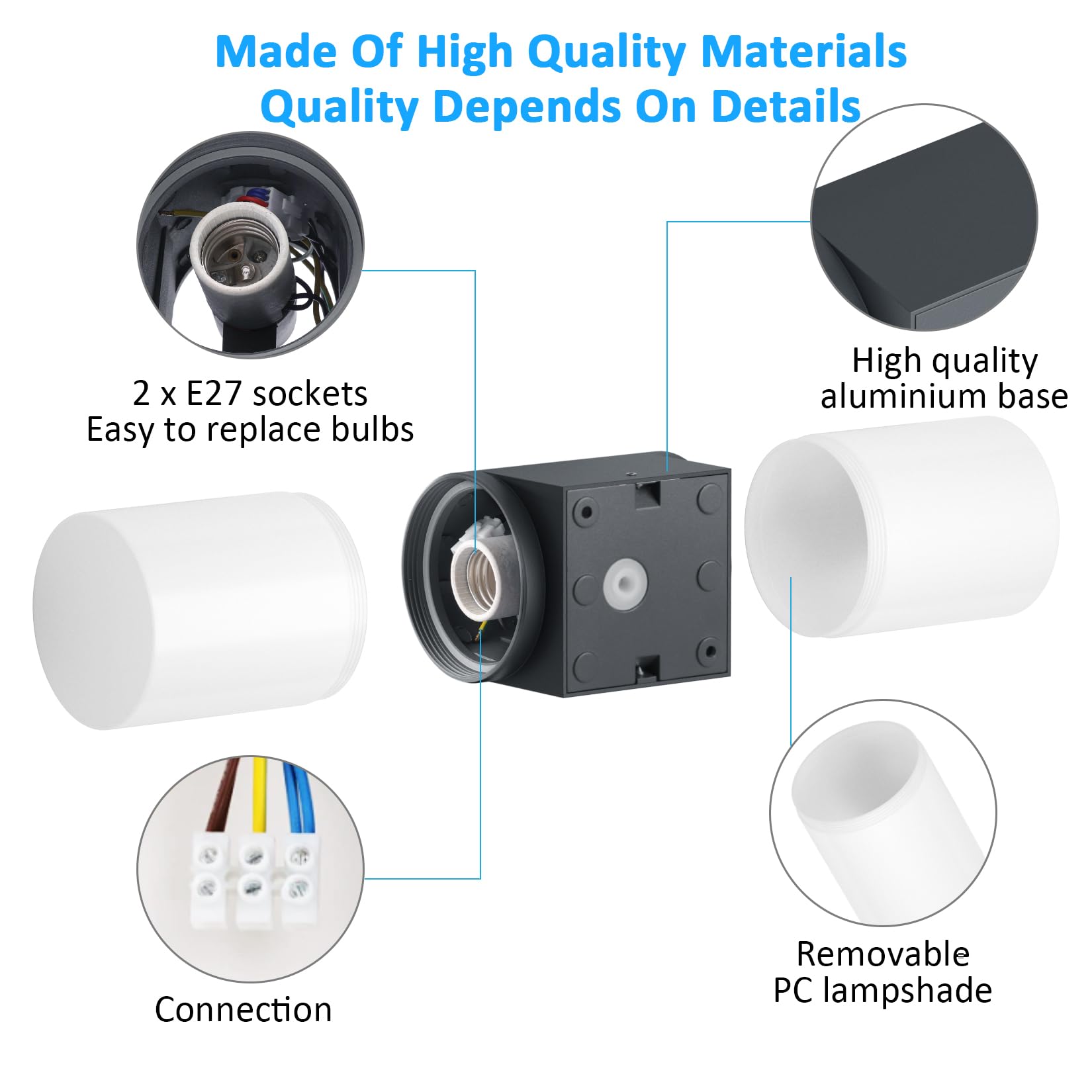 - 【E27 Fassung】:Die Aussenwandleuchte ist geeignet für E27 Glühbirne, max 40W (Glühbirnengrösse ist 10,5cm*6cm), besteht aus zwei Glühbirnen (Glühbirne nicht enthalten), wählen Sie Ihre Lieblingslichtfarbe, lassen Sie Ihr Zuhause unter dem schönen Licht erstrahlen.