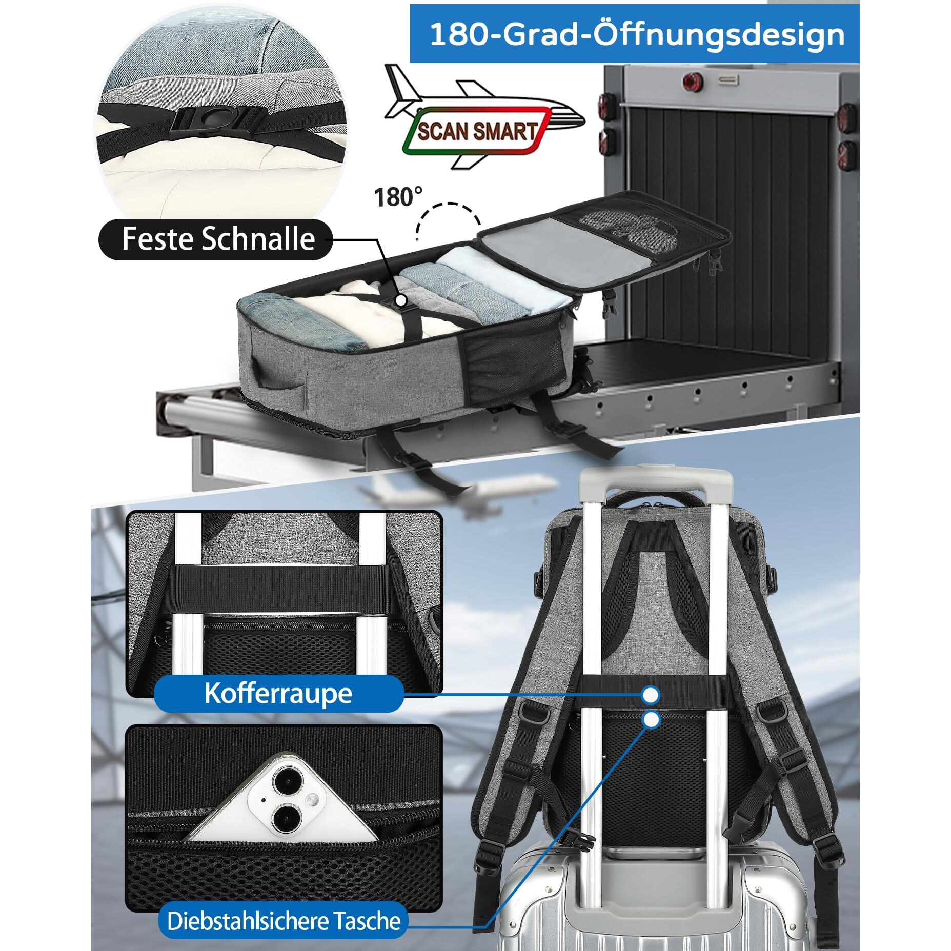 - 【Praktische Funktionen】- Unsere Kabinentasche wurde mit durchdachten Funktionen entworfen. Sie verfügt über eine spezielle Nassfachtasche im Hauptfach, um nasse Gegenstände zu trennen. Der stabile Tragegriff ermöglicht mühelosen Transport, während die vier seitlichen Schnallenstreifen für erhöhte Stabilität und Sicherheit sorgen. Ausserdem gibt es eine Diebstahlschutztasche auf der Rückseite, um die Sicherheit Ihrer Wertgegenstände zu gewährleisten.