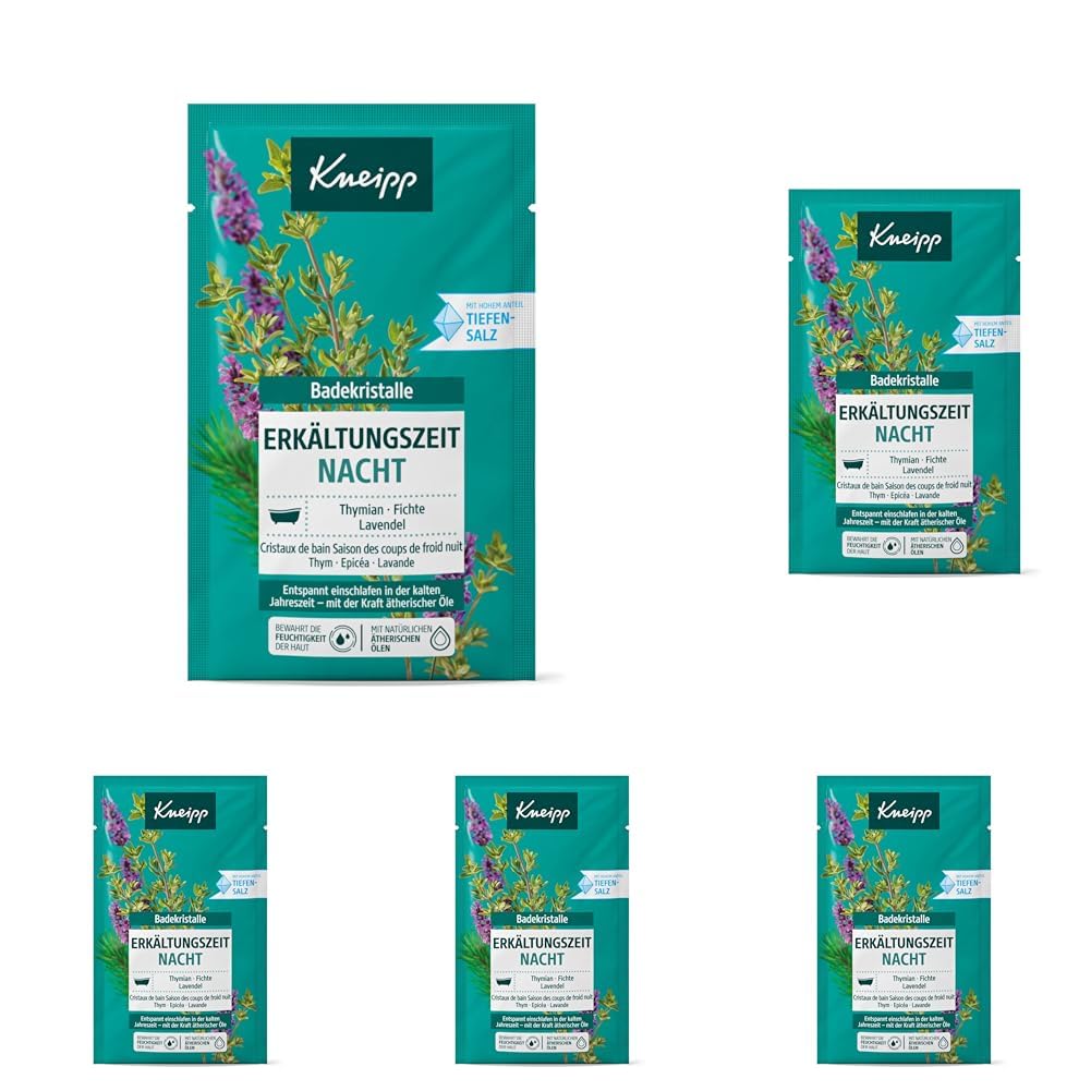 Kneipp Badekristalle Erkältungszeit Nacht - naturreines Badesalz der Saline Luisenhall mit ätherischen Ölen aus Lavendel, Thymian & Fichte - entspannt einschlafen in kalten Jahreszeiten - 60g
