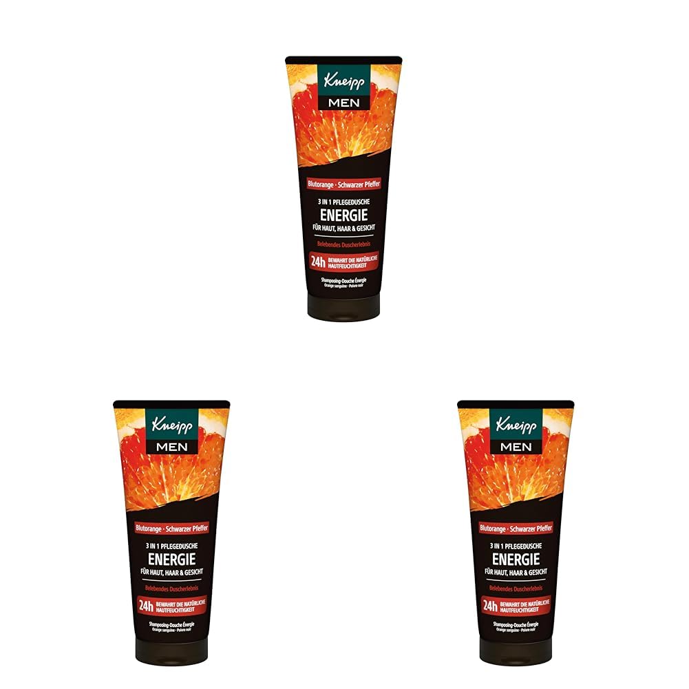 Kneipp MEN 3 in 1 Pflegedusche Energie - Duschgel für Haut, Haar & Gesicht - Blutorangenöl & schwarzer Pfeffer - 200ml (Packung mit 3) - Biologisch Abbaubar