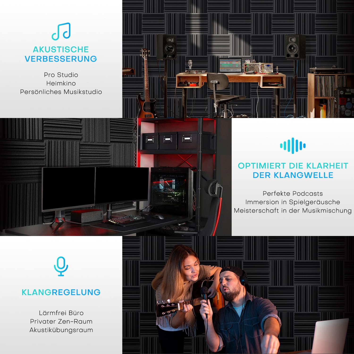 24 Stück Akustikschaumstoff Schaumstoffplatte, Schalldämmung Akustikpaneele, 5 x 30 x 30 cm Schallabsorber Akkustikschaumstoff, Hoher Dichte Akustikschaumstoff für Live-Studios, Aufnahmestudios