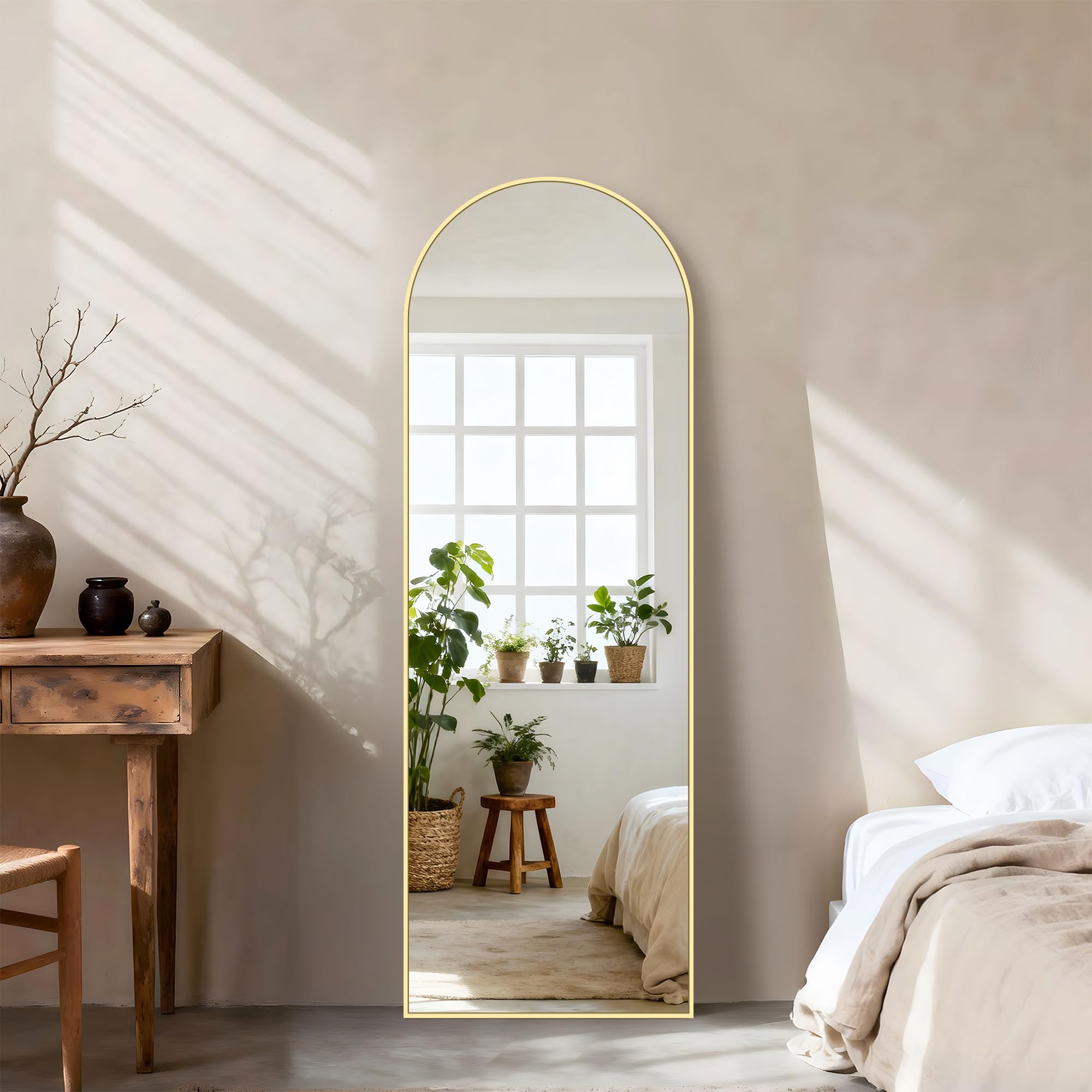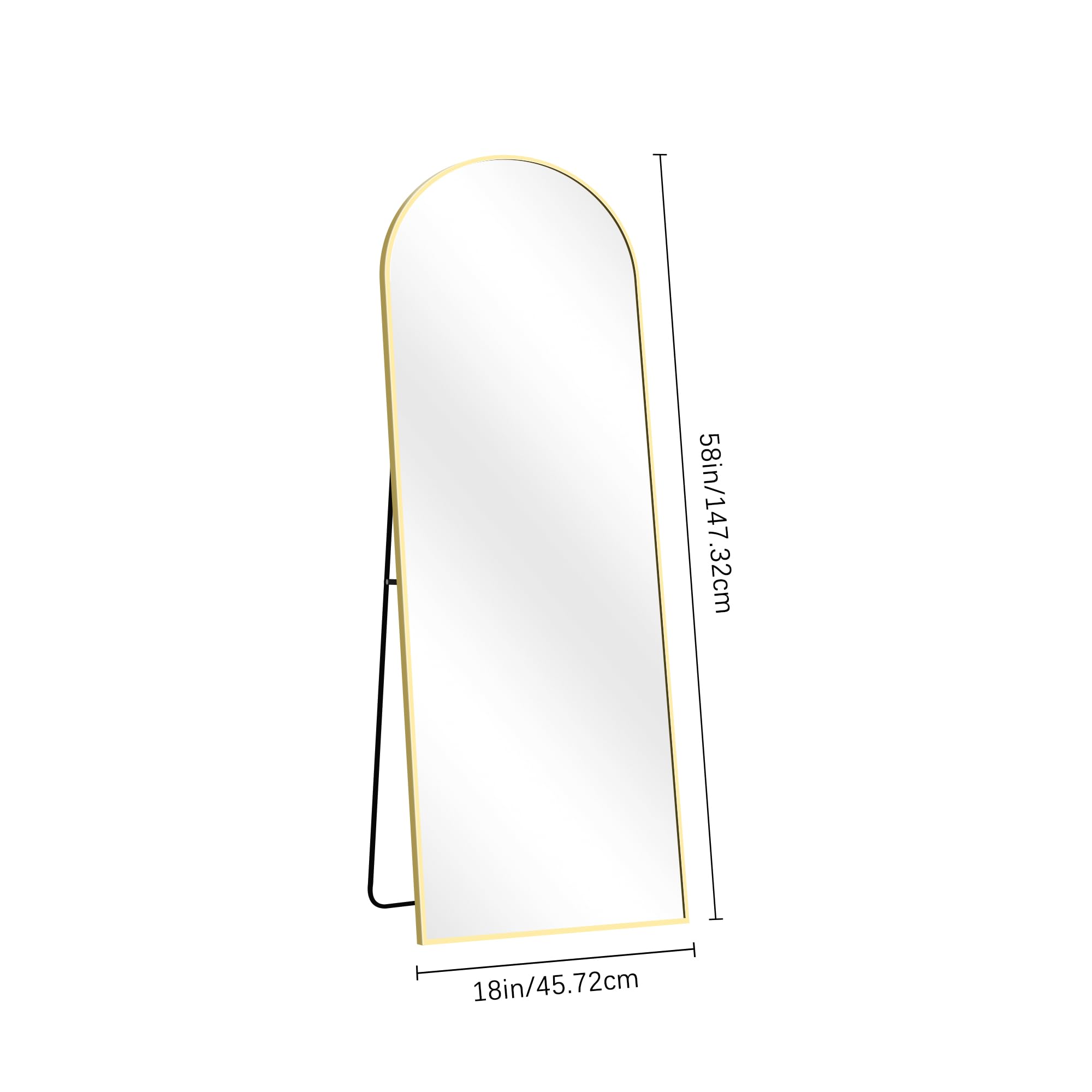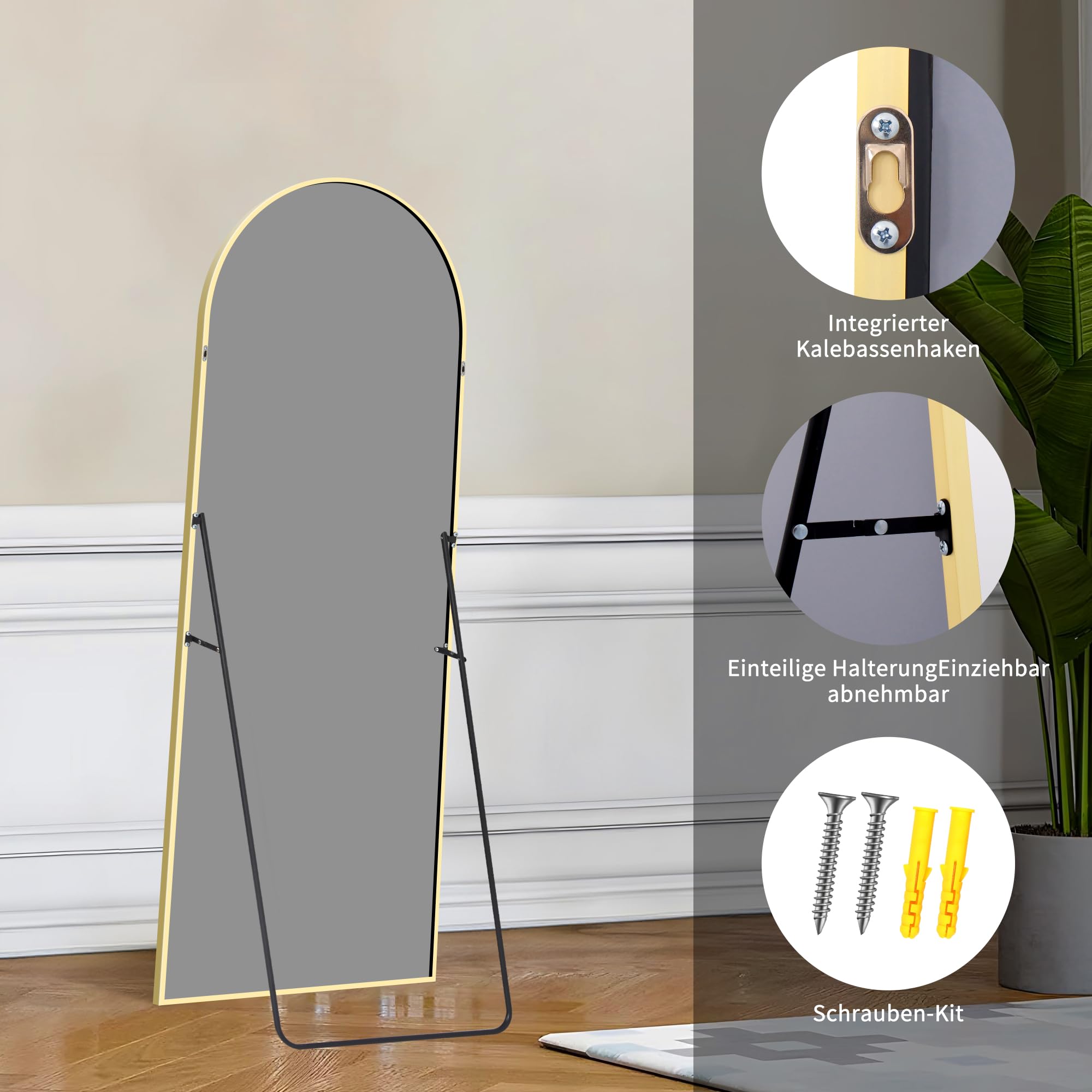 KOCUUY Bogen Standspiegel, 147 x 47 cm Grosser Gewölbter Ganzkörperspiegel, Gross Wandspiegel mit Gold Aluminium Rahmen, Hängend, Stehend, Kippbar, für Wohnzimmer, Schlafzimmer und Flure