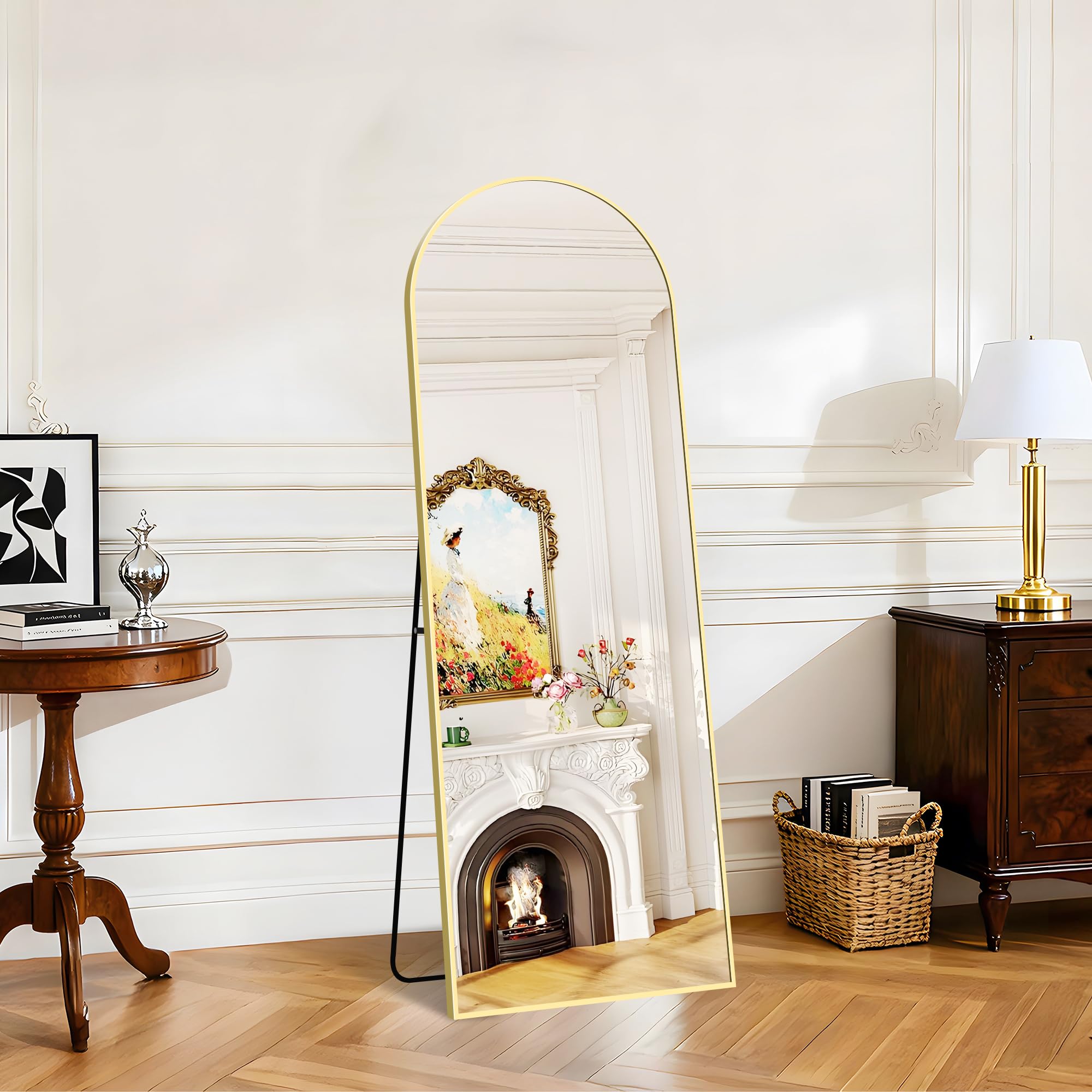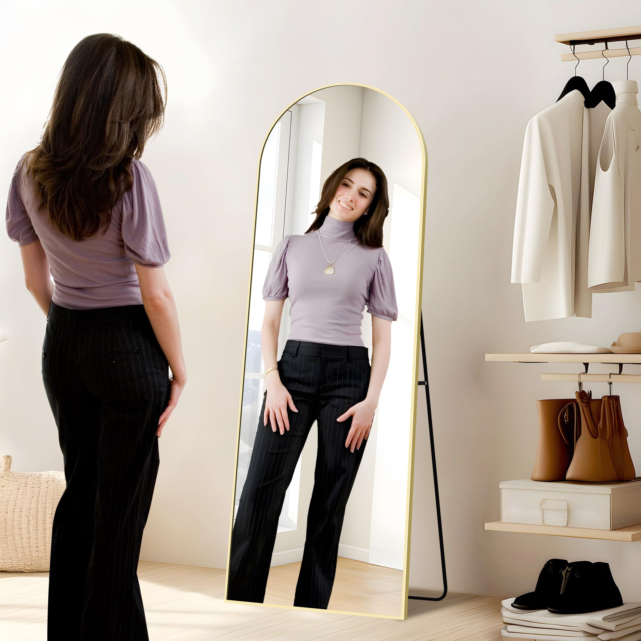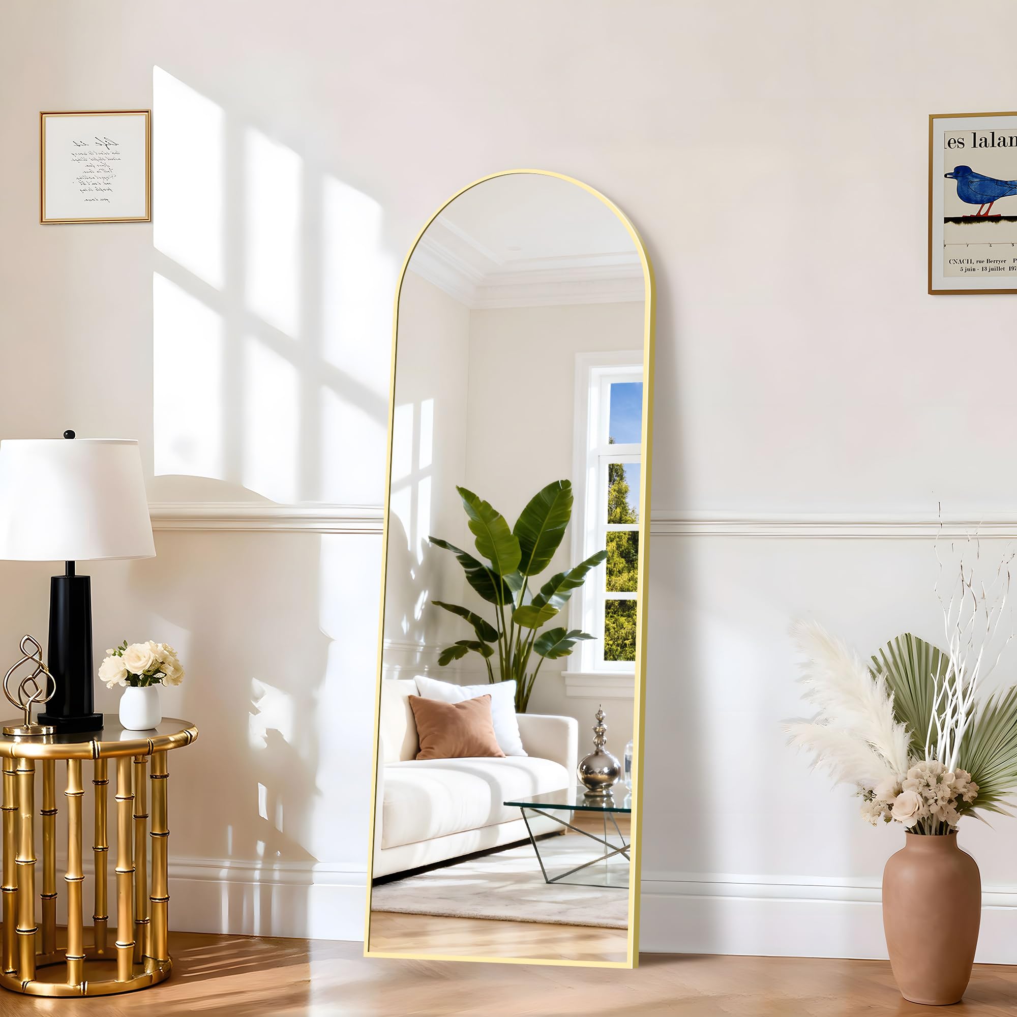 KOCUUY Bogen Standspiegel, 147 x 47 cm Grosser Gewölbter Ganzkörperspiegel, Gross Wandspiegel mit Gold Aluminium Rahmen, Hängend, Stehend, Kippbar, für Wohnzimmer, Schlafzimmer und Flure
